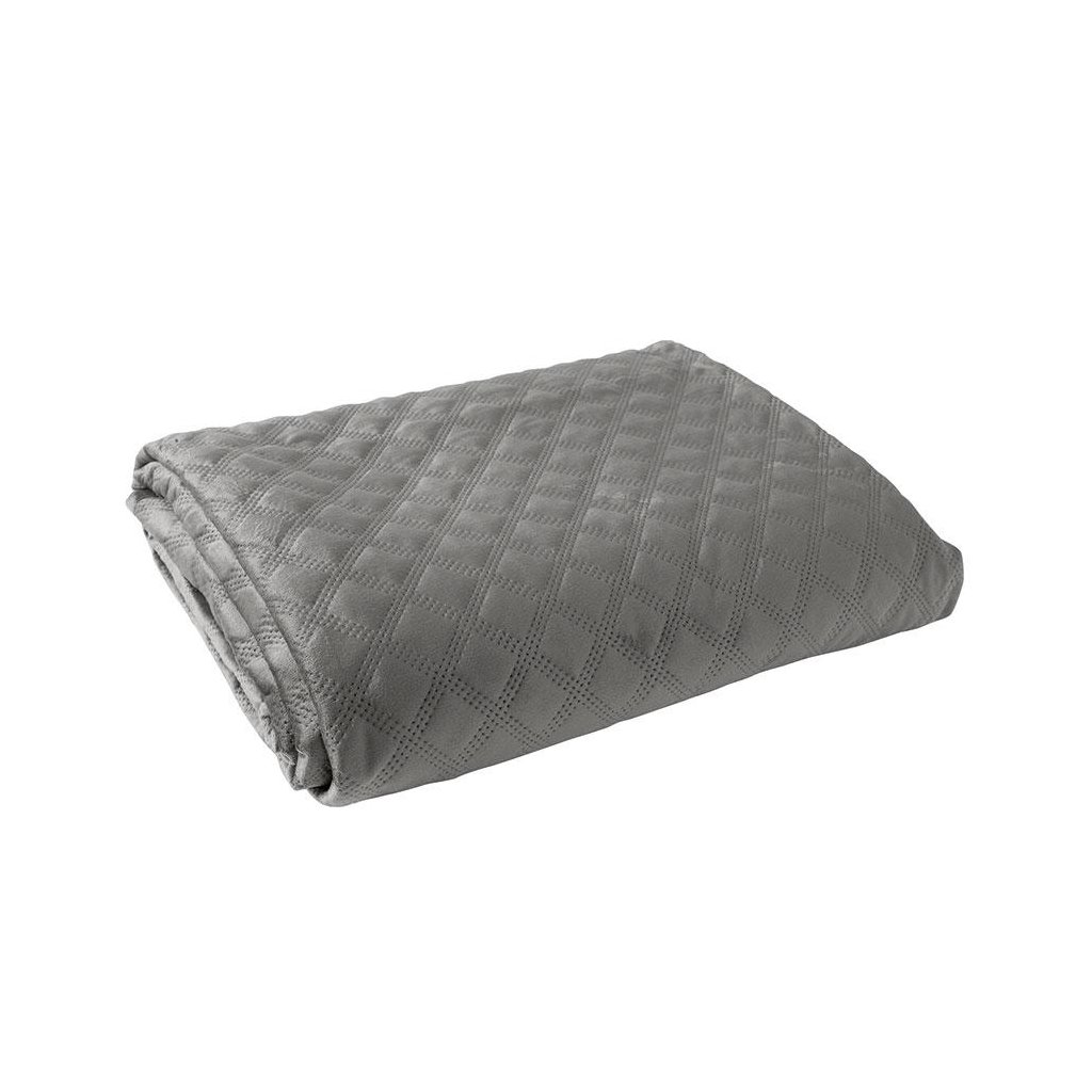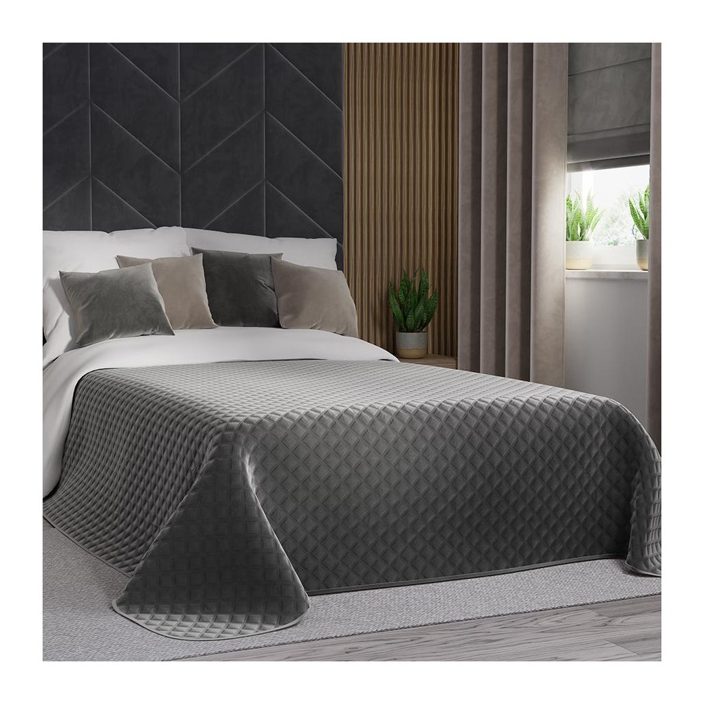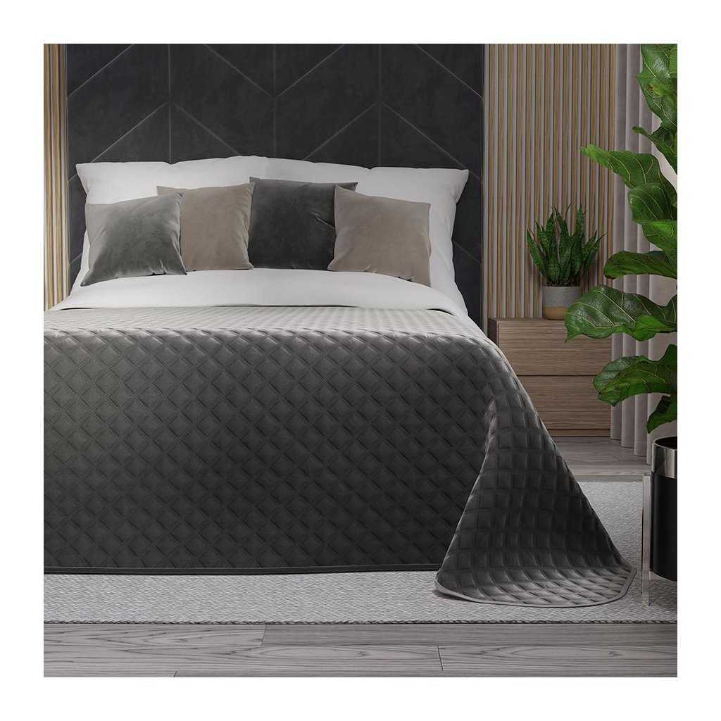 Antracitový zamatový prehoz na posteľ VELVI 220x240 cm