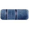 Elegantný bambusový froté uterák MIRO zo savej a nadýchanej látky so zaujímavým okrajom zdobeným lesklými pruhmi a jemným vzorom. Farba: svetlomodrá, Gramáž: 550 g/m2, Zloženie: 70% bambusové vlákno 30% bavlna.