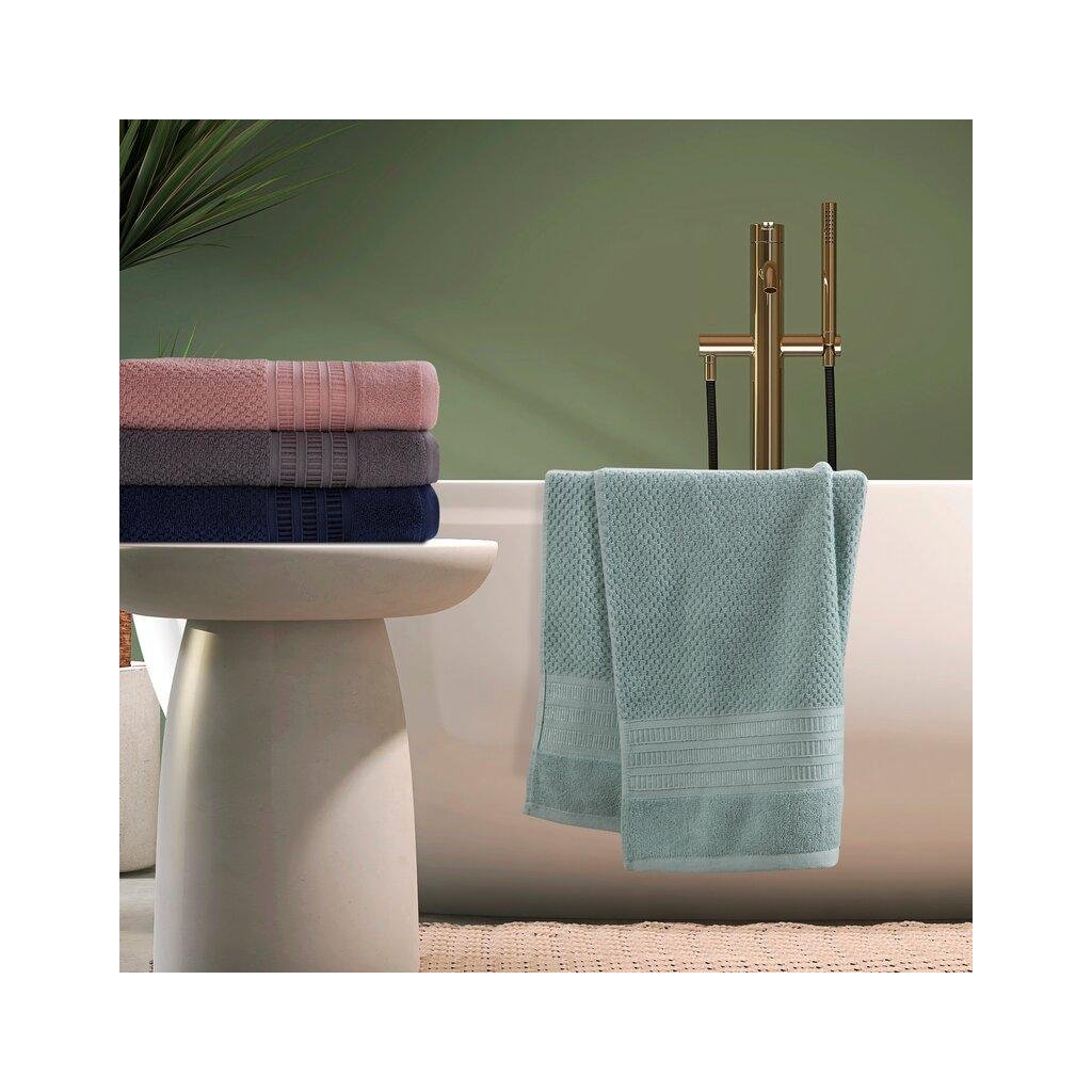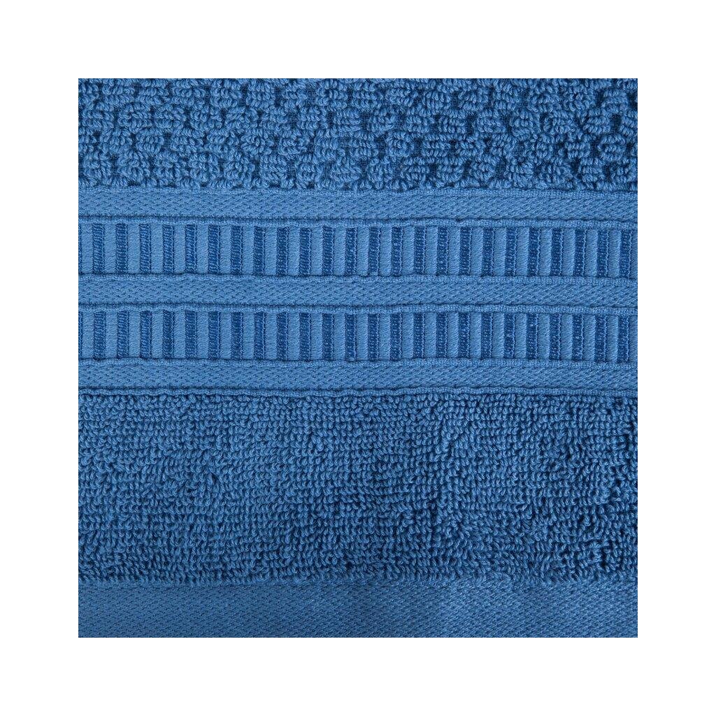 Bavlnený modrý uterák ROSITA s ryžovou štruktúrou a žakárovou bordúrou s geometrickým vzorom