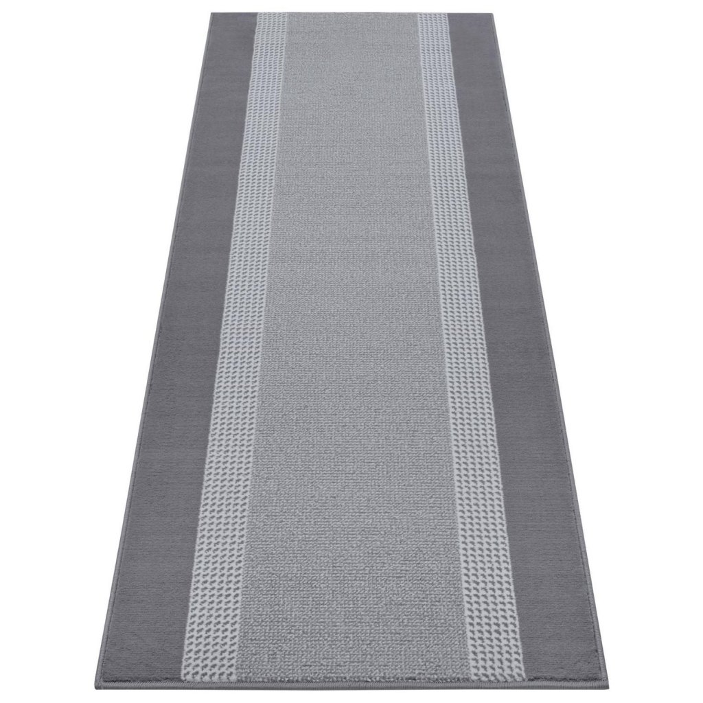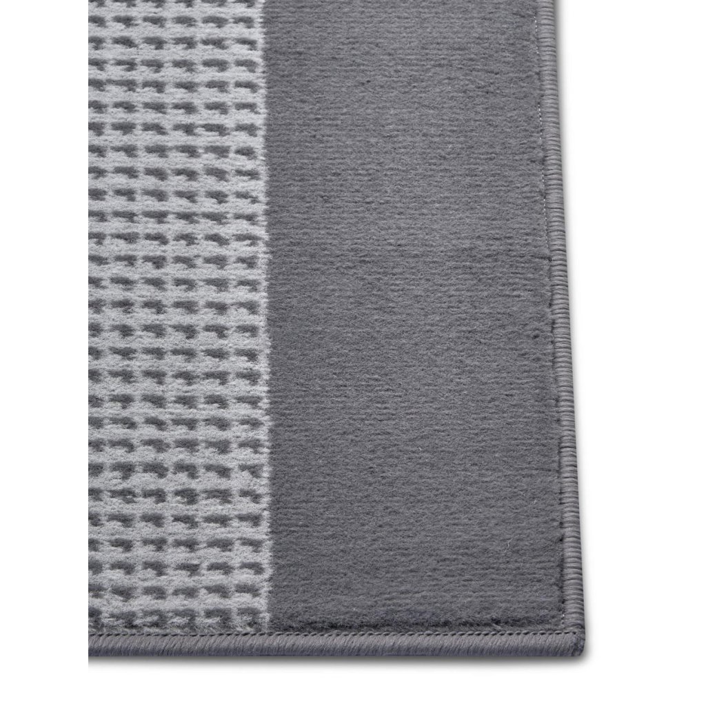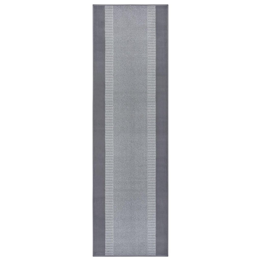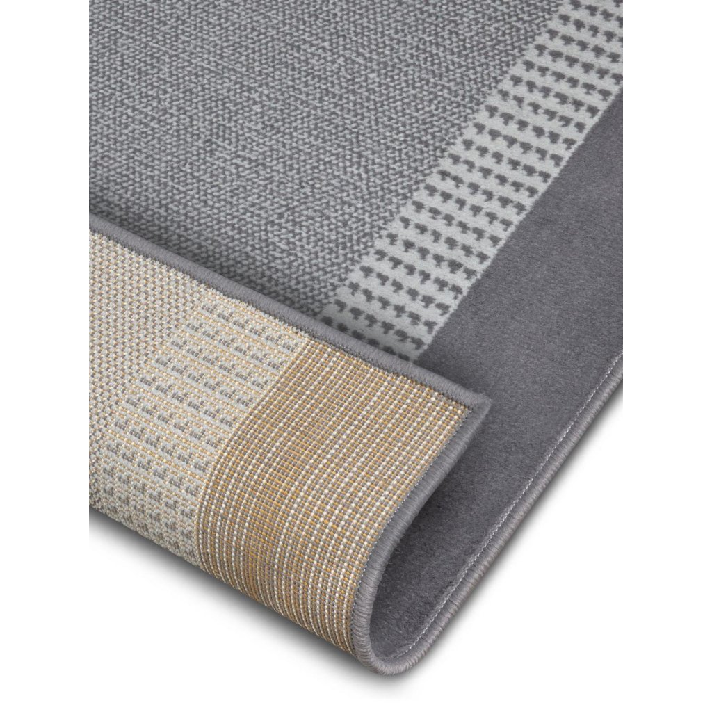 Behúň so svetlo šedým stredom a tmavo šedými pruhmi po obvode dlhších strán. Jedná sa o kvalitný kúsok zo 100% polypropylénu s jutou na rubovej strane. Vďaka stredne vysokému strihanému vlasu je veľmi komfortný na došľap. Ďalej je obšitý po celom obvode a ľahko udržateľný.