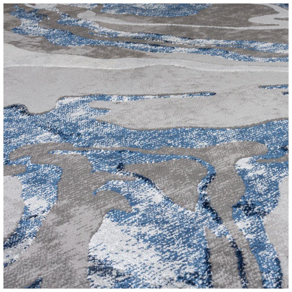 Abstraktný motív tohto koberca vyzerá, ako by ste miešali šedú, striebornú a tmavo modrú farbu. Do Vašej domácnosti vnesie luxusnú atmosféru a najlepšie sa bude vynímať v spálni, obývačke alebo chodbe. Vyrába sa z kvalitnej zmesi materiálov, vďaka ktorej je odolný, pevný, jemný a ľahký na údržbu.