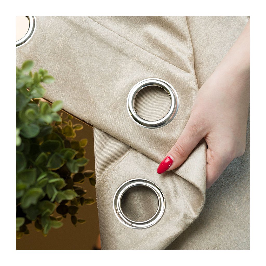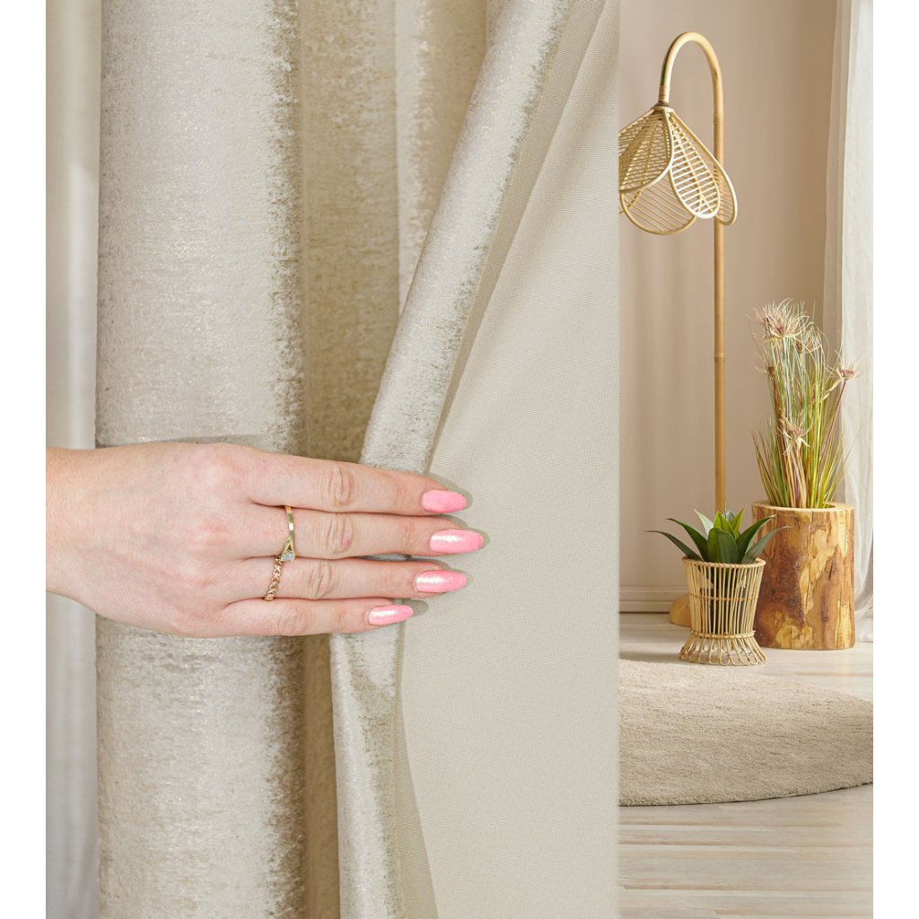 Béžový zamatový záves so zlatou potlačou na krúžkoch ELEONORA 140x250 cm