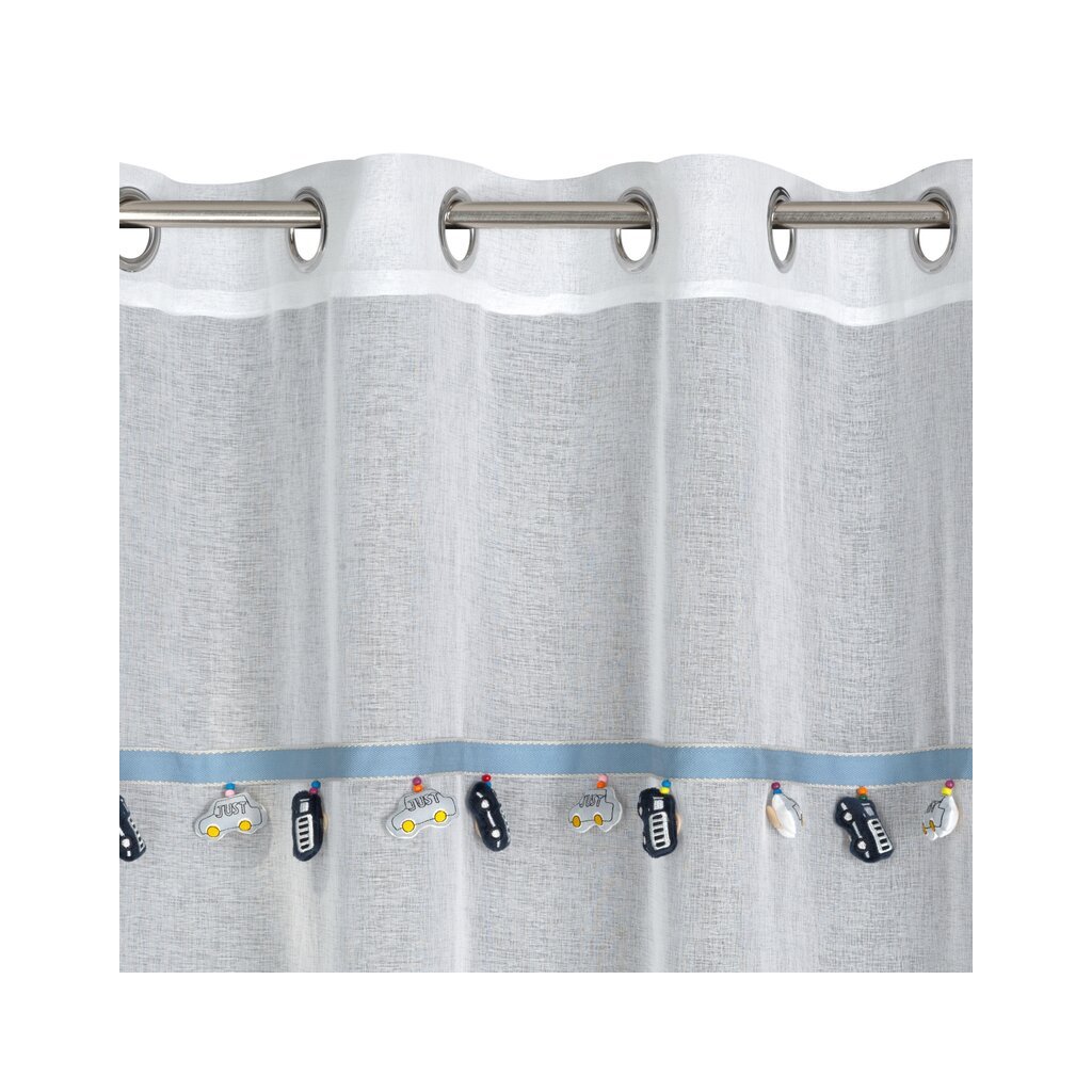 Biela detská etamínová záclona s motívom 3D autíčiek na krúžkoch CAR 140x250 cm