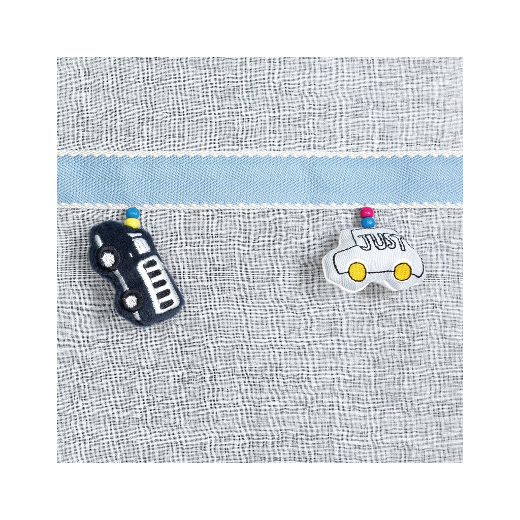 ✅ Horný okraj zdobí dekoratívna páska s 3D aplikáciami – mäkké autíčka