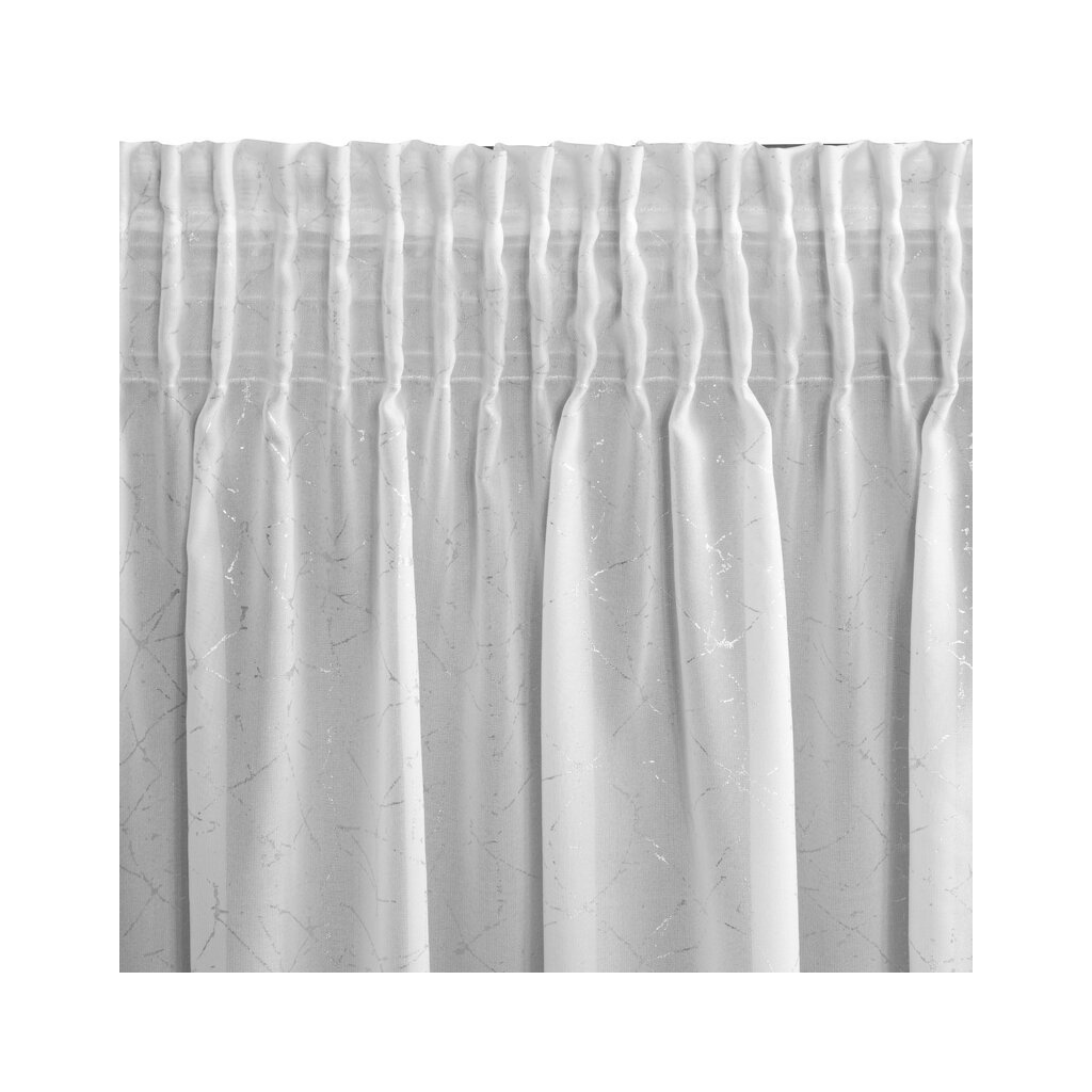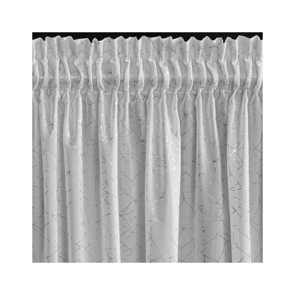 Biela etamínová záclona s nepravidelným strieborným vzorom na páske ROXI 140x270 cm