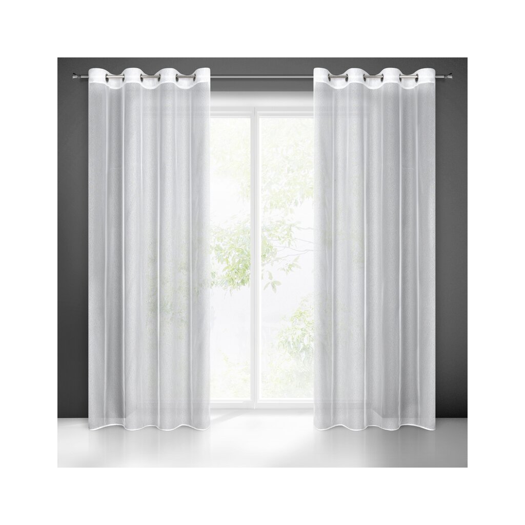 Biela hladká záclona s jemnou sieťovanou štruktúrou na krúžkoch TAMINA 140x250 cm