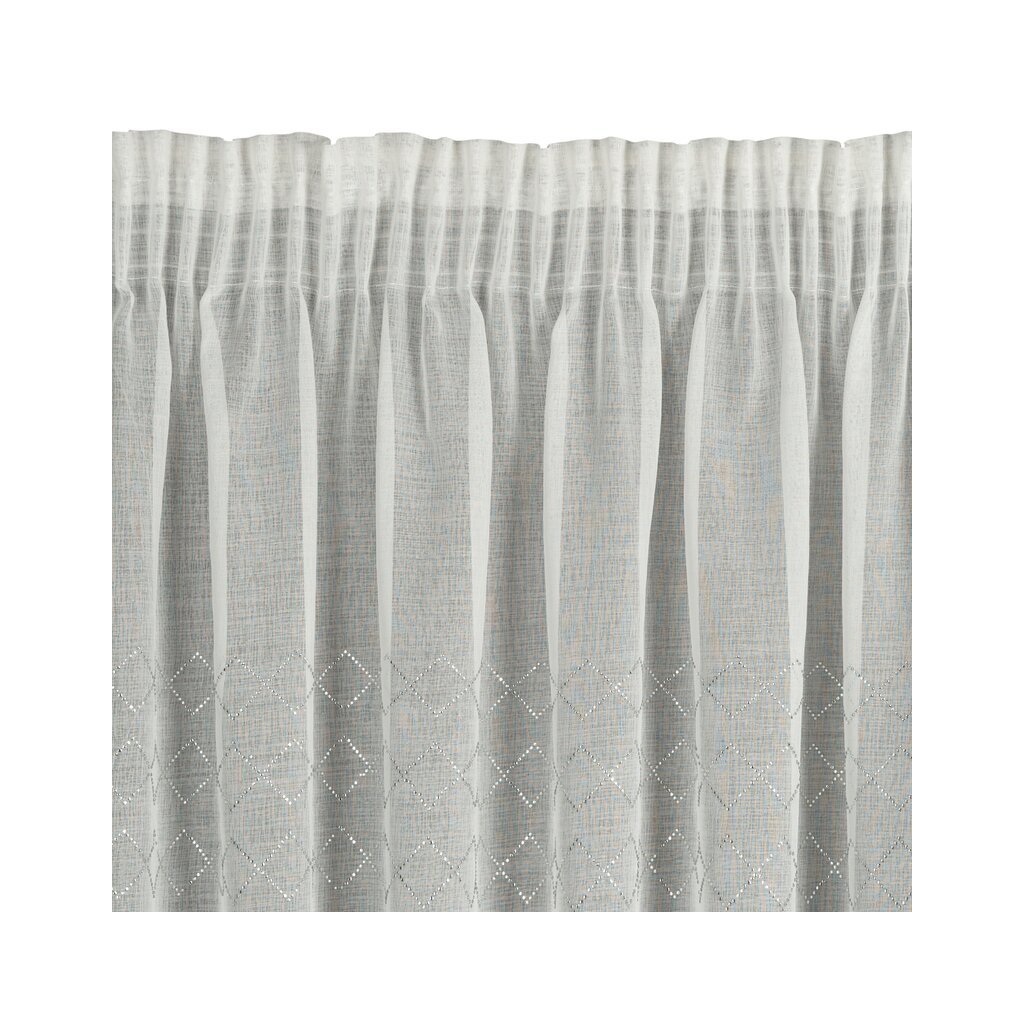 Biela jemná etamínová záclona s pásom lesklých kryštálikov na páske KLEO 135x260 cm
