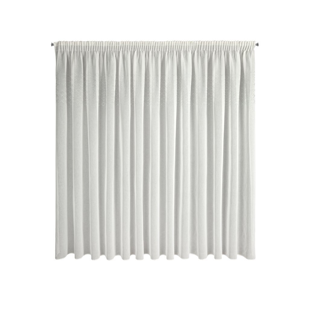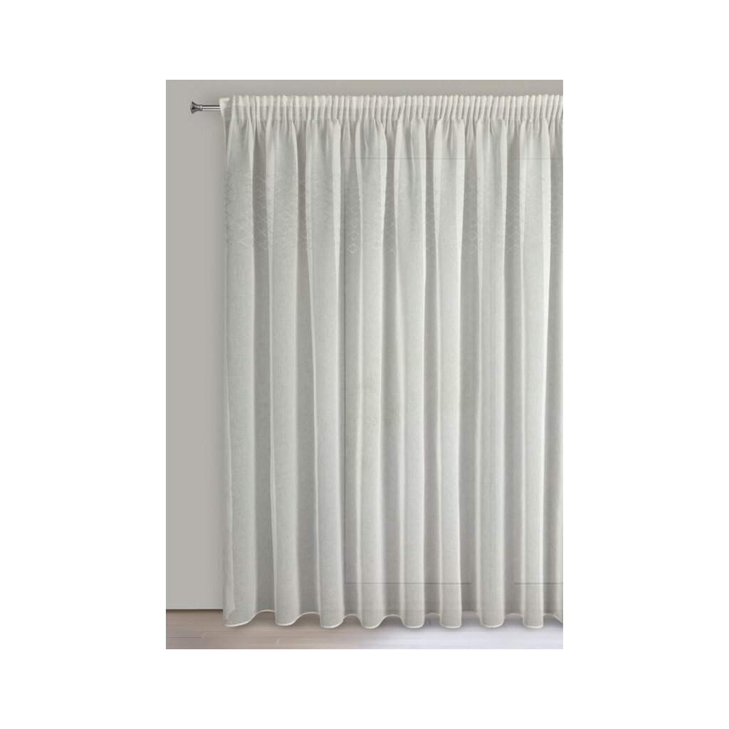 Biela jemná etamínová záclona s pásom lesklých kryštálikov na páske KLEO 345x260 cm