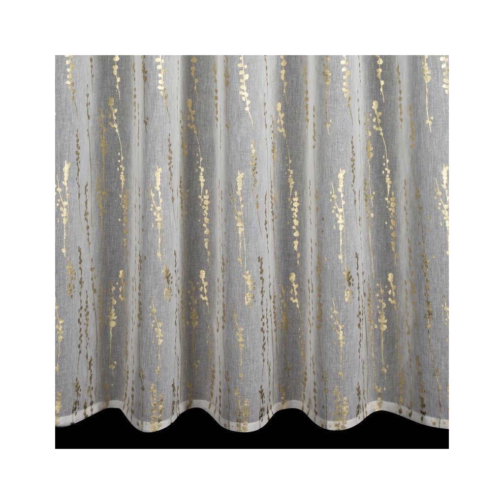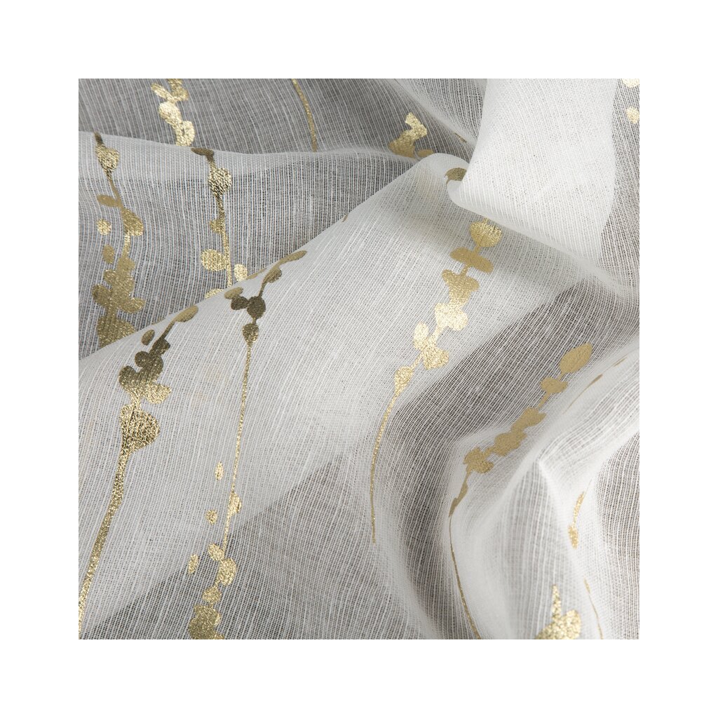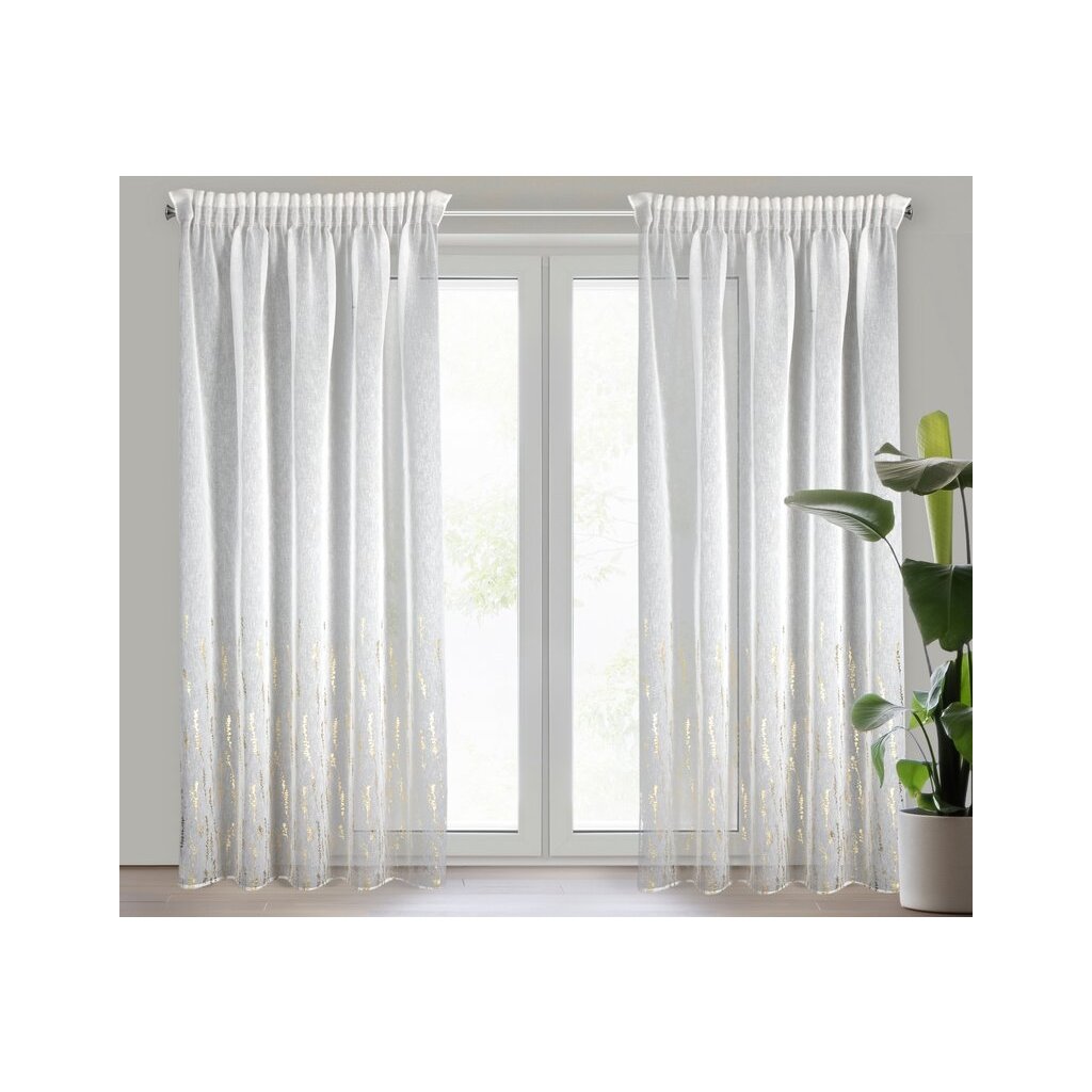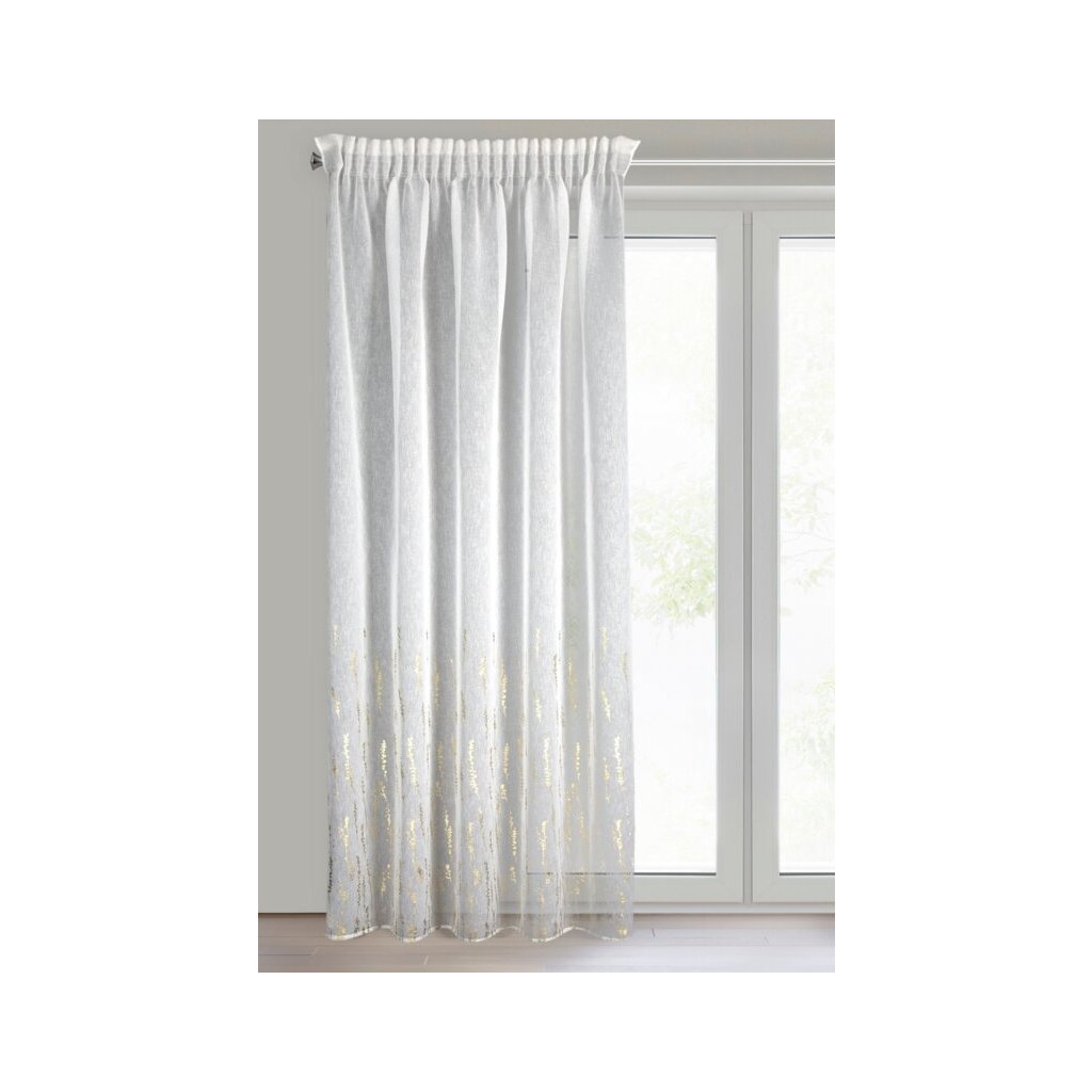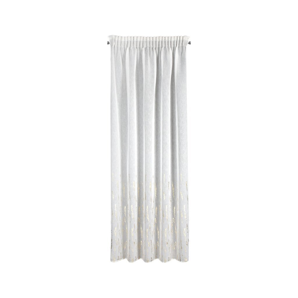 Biela matná záclona so zlatým lesklým vzorom na páske LINZI 140x270 cm