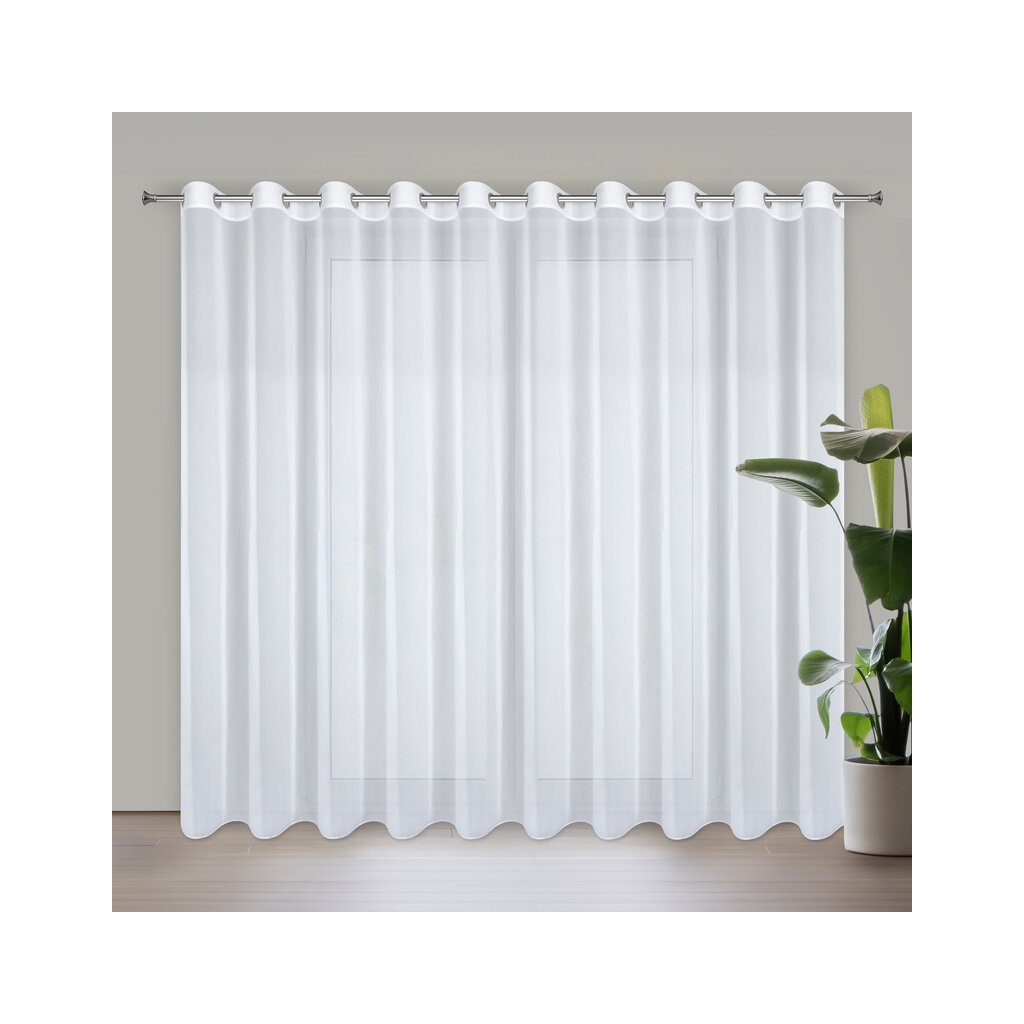 Biela šifónová záclona s jemným leskom na krúžkoch ARLETA 350x270 cm