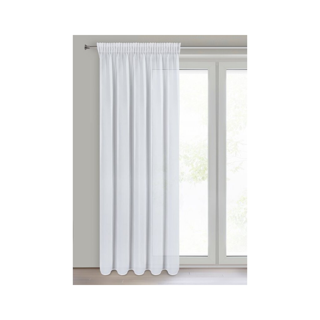 Biela šifónová záclona s jemným leskom na páske ARLETA 135x270 cm