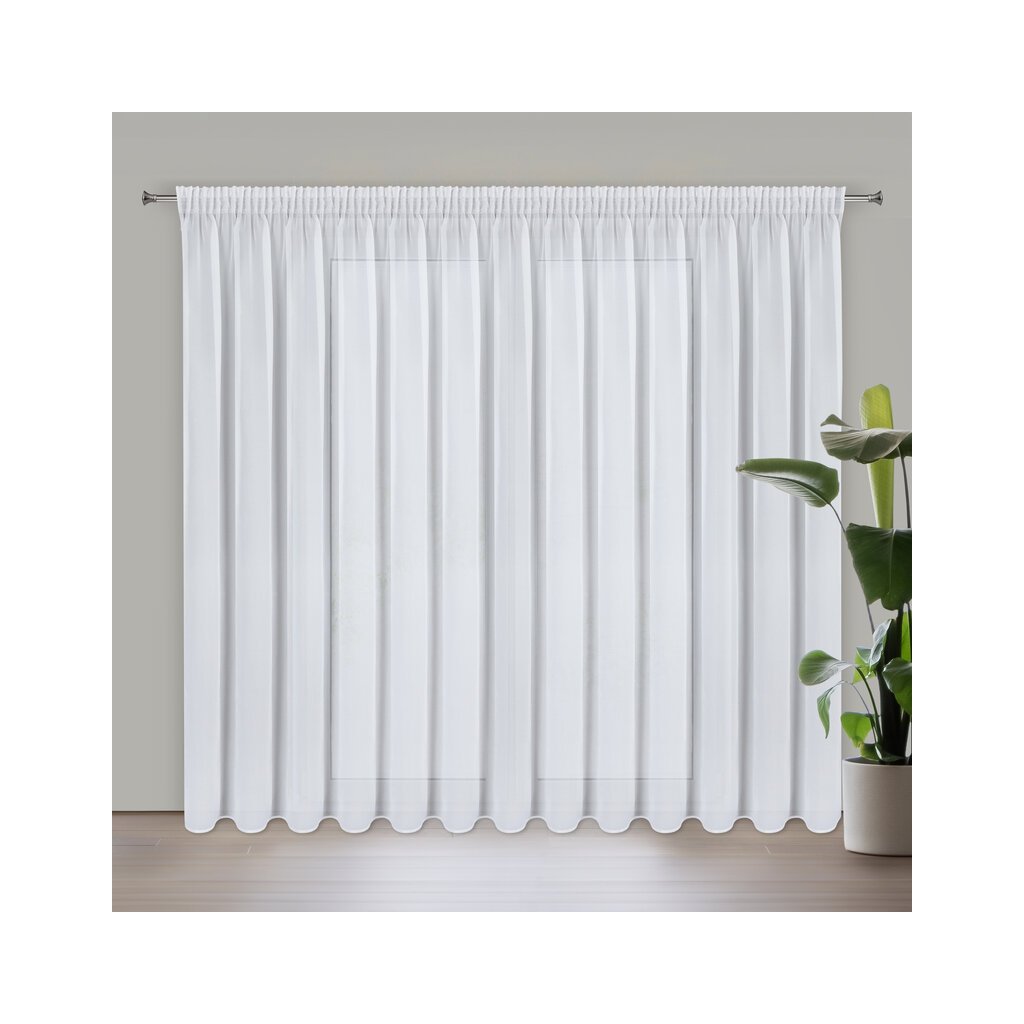 Biela šifónová záclona s jemným leskom na páske ARLETA 350x270 cm