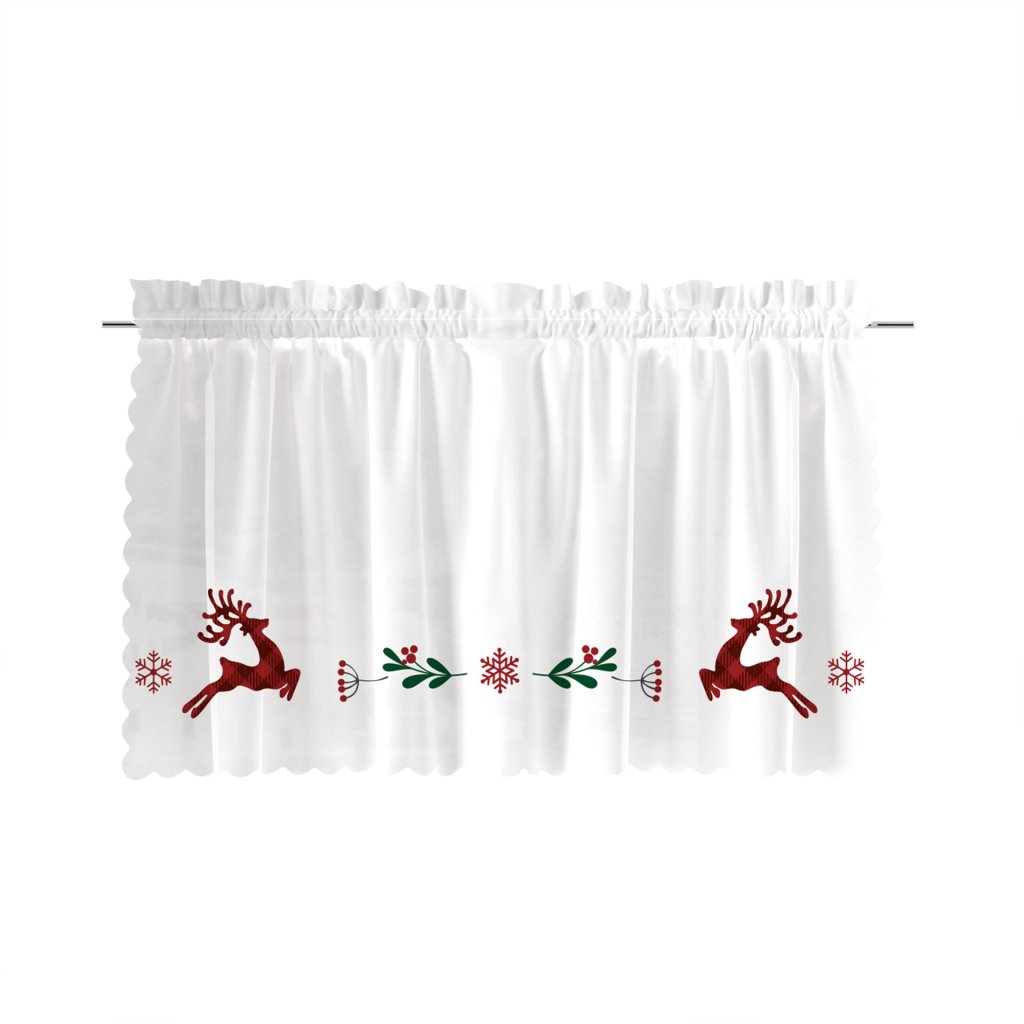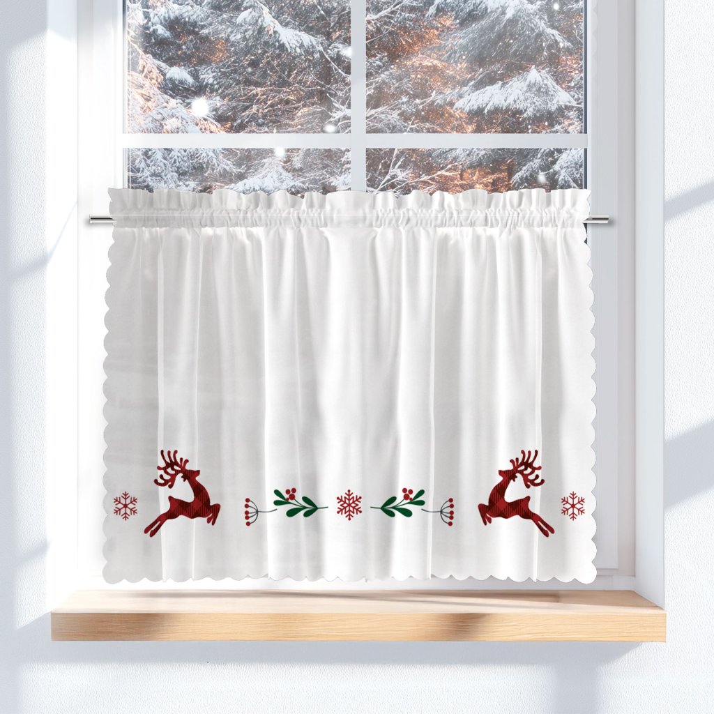 Záclony sú pripravené na okamžité použitie, príjemné na dotyk a ľahké na údržbu, takže si bez námahy udržiavajú elegantný spád a tvarovú stálosť. Stačí ich zavesiť, pridať pár obľúbených ozdôb a užiť si čarovnú vianočnú náladu vo Vašej kuchyni, jedálni či obývačke.