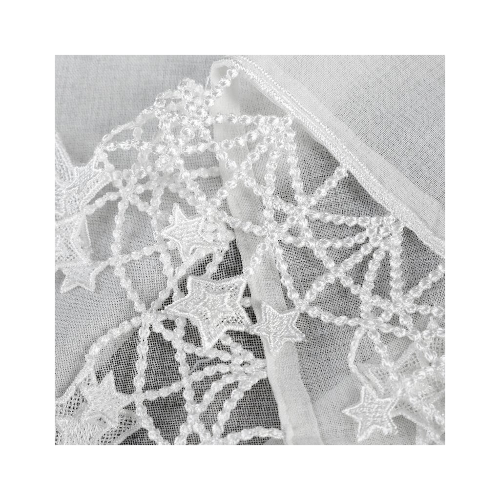 ✅ Spodný okraj s obrubou a voľne visiacimi hviezdičkami – výrazný sviatočný detail