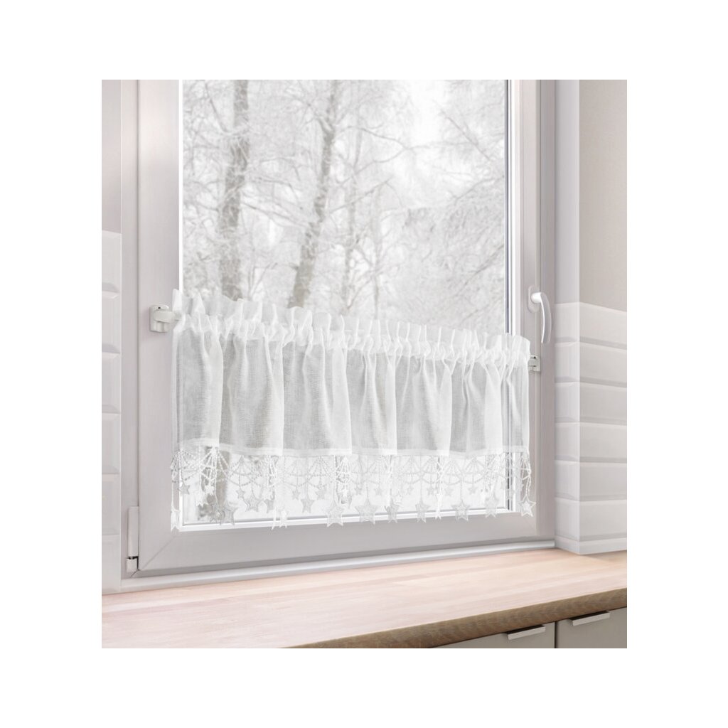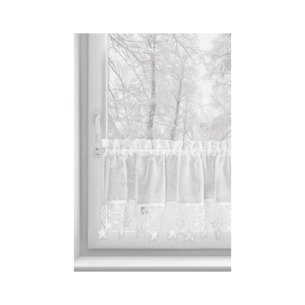 Biela vianočná vitrážová záclona s hviezdičkami na tuneli XMAS 150x30 cm