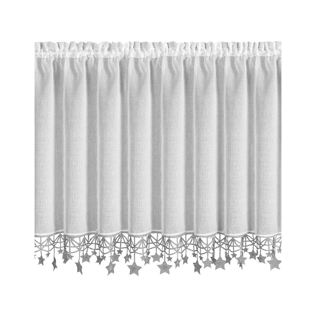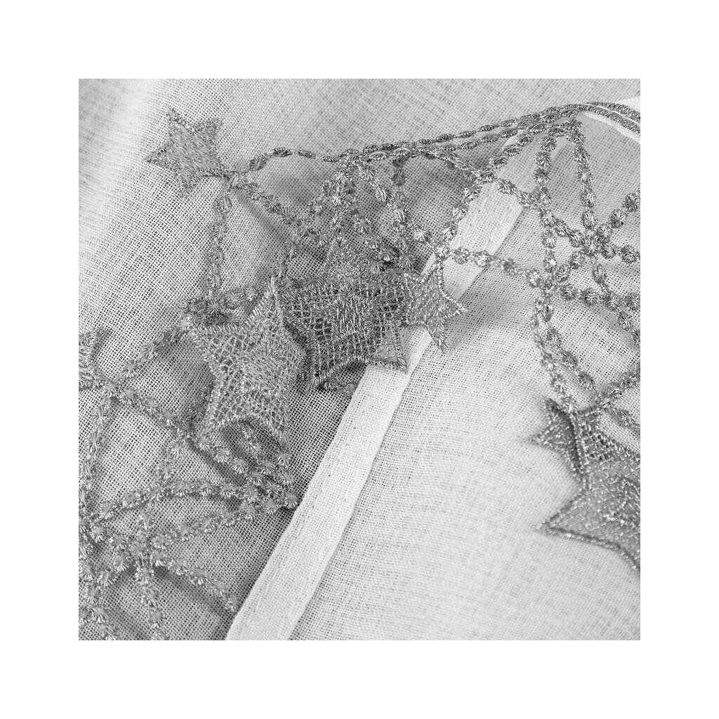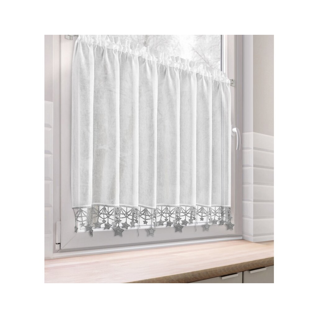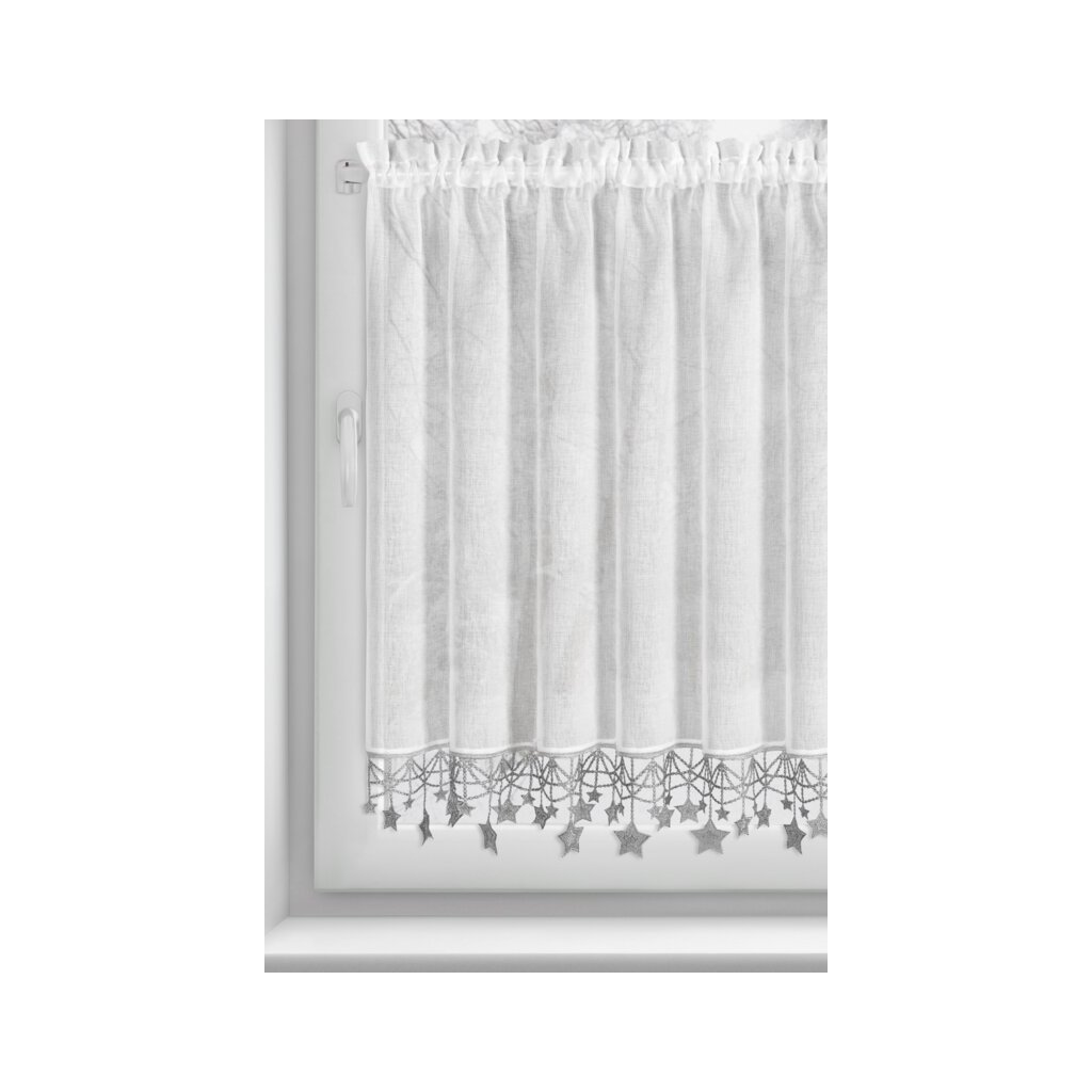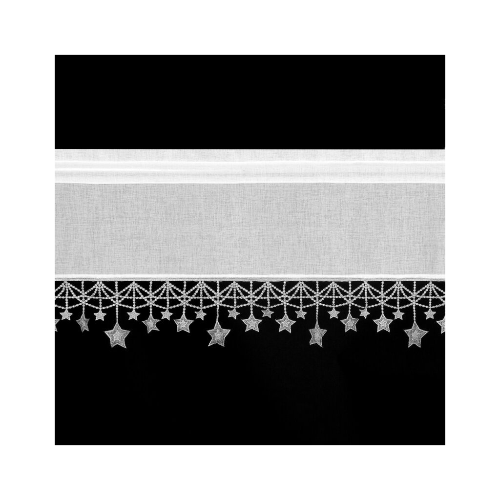 Biela vianočná vitrážová záclona so striebornými hviezdičkami na tuneli XMAS 150x90 cm