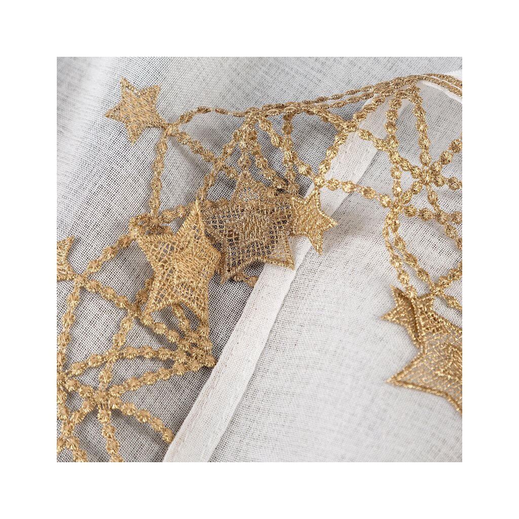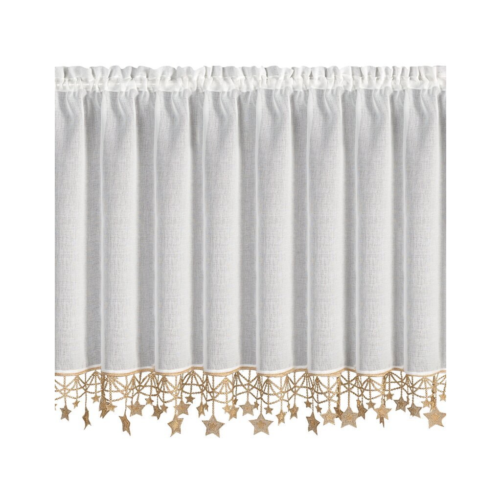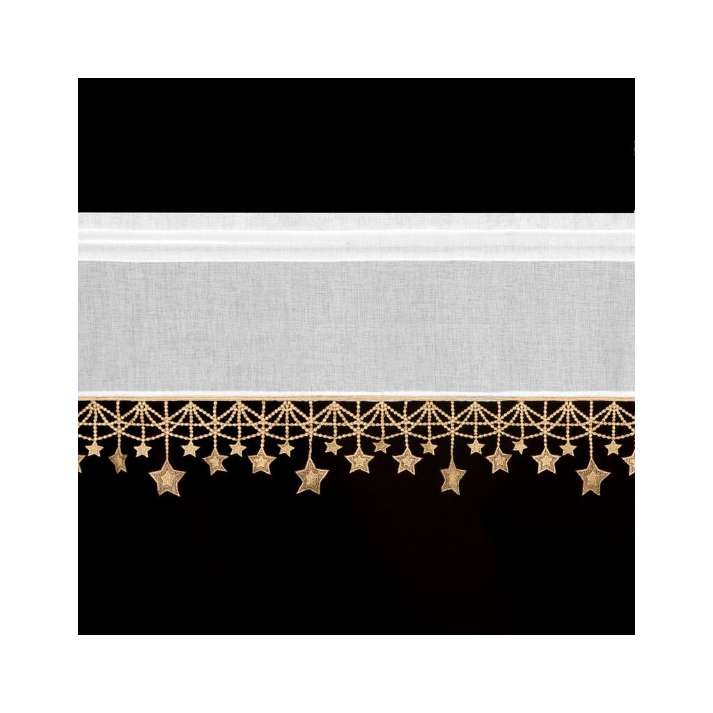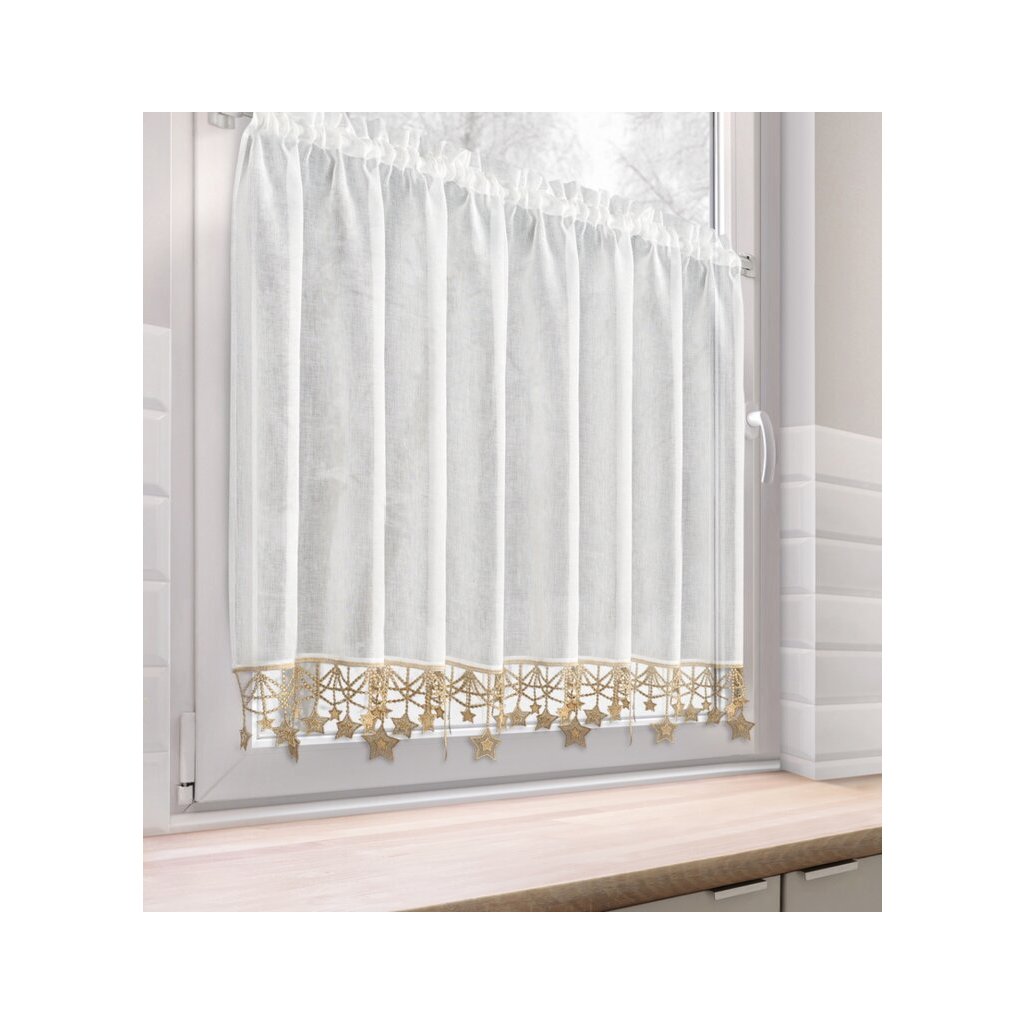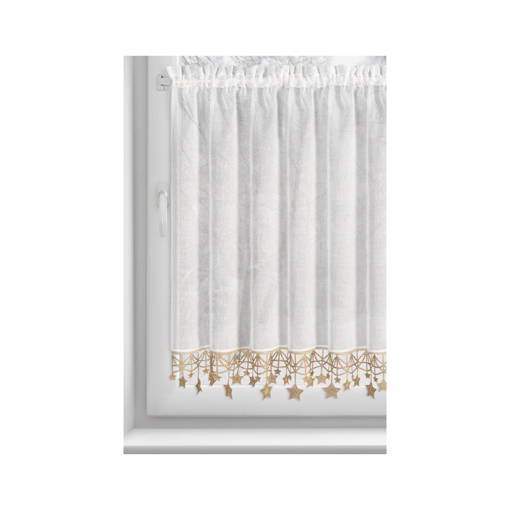 Biela vianočná vitrážová záclona so zlatými hviezdičkami na tuneli XMAS 150x90 cm