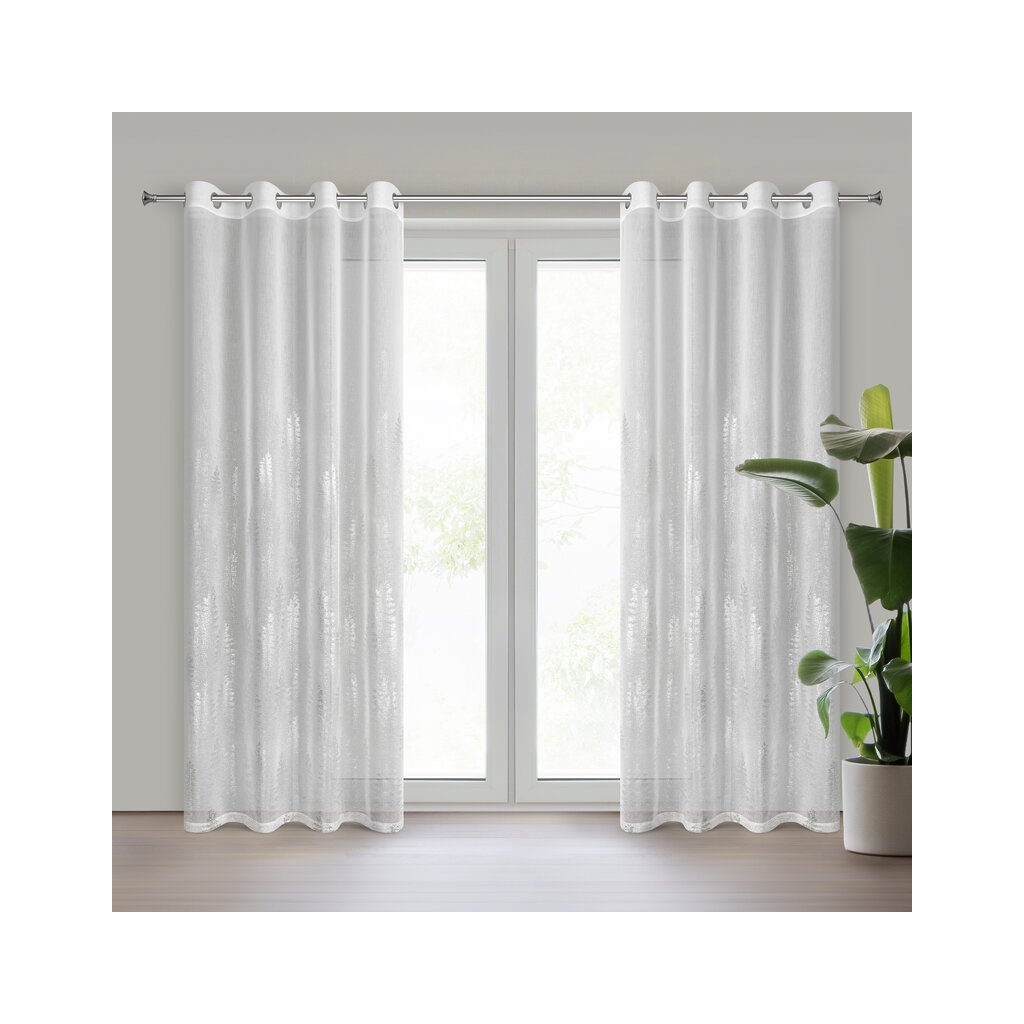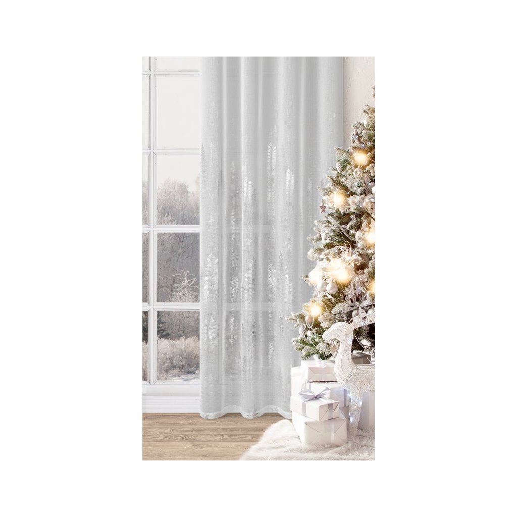 Biela vianočná záclona so striebornými stromčekmi na krúžkoch ELSA 140x250 cm