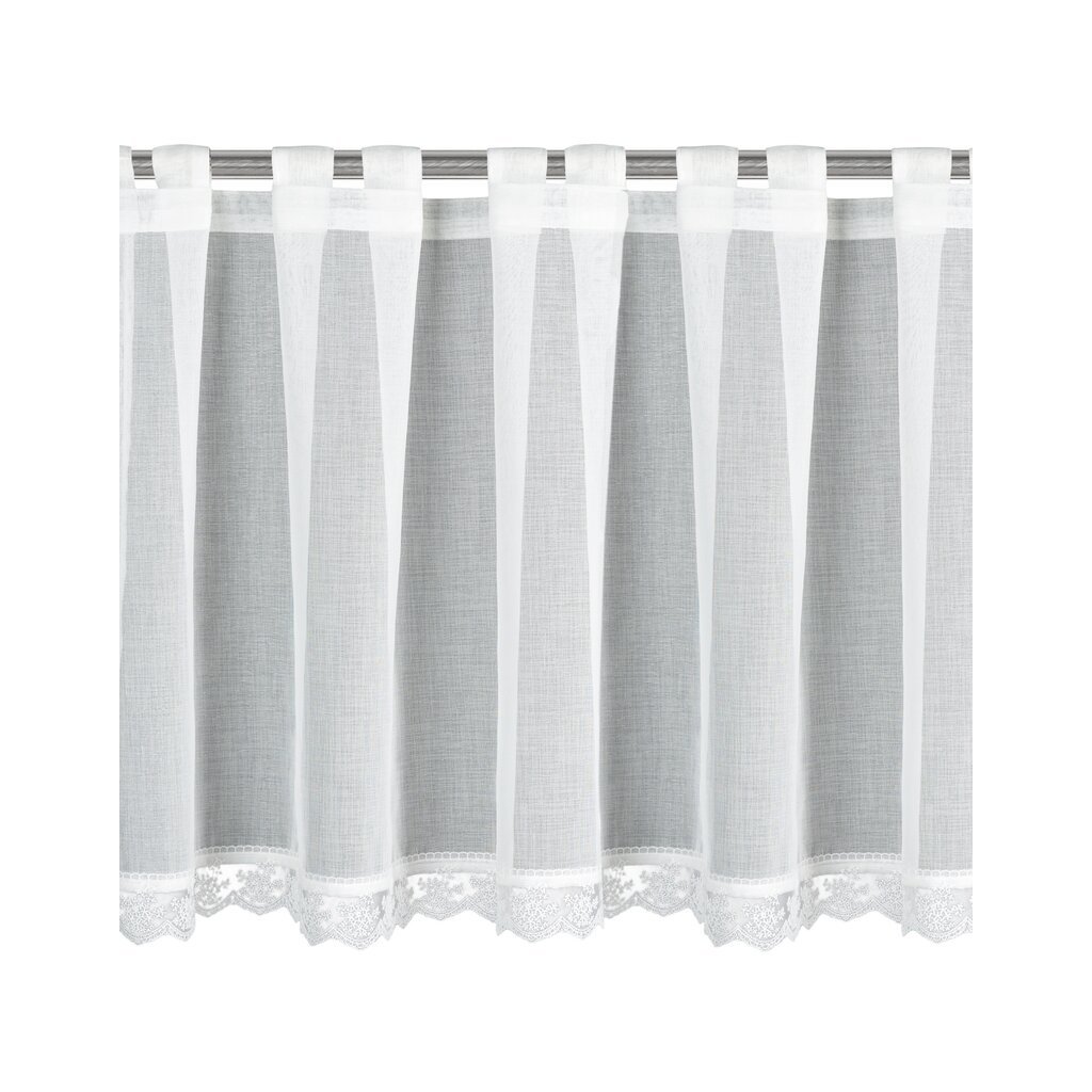 Biela vitrážová záclona s jemnou čipkou na uškách SUZAN 150x70 cm