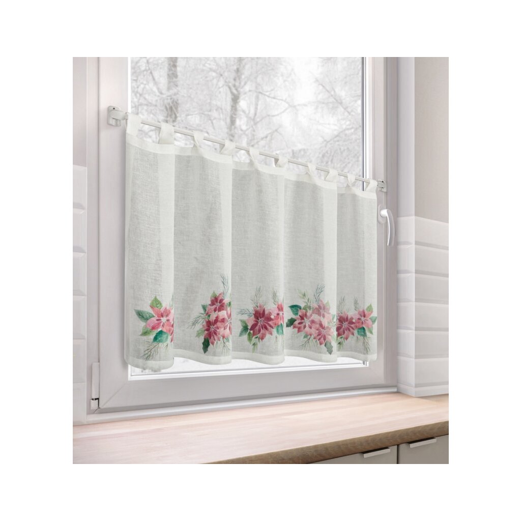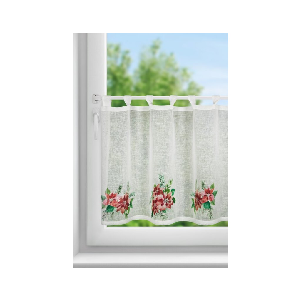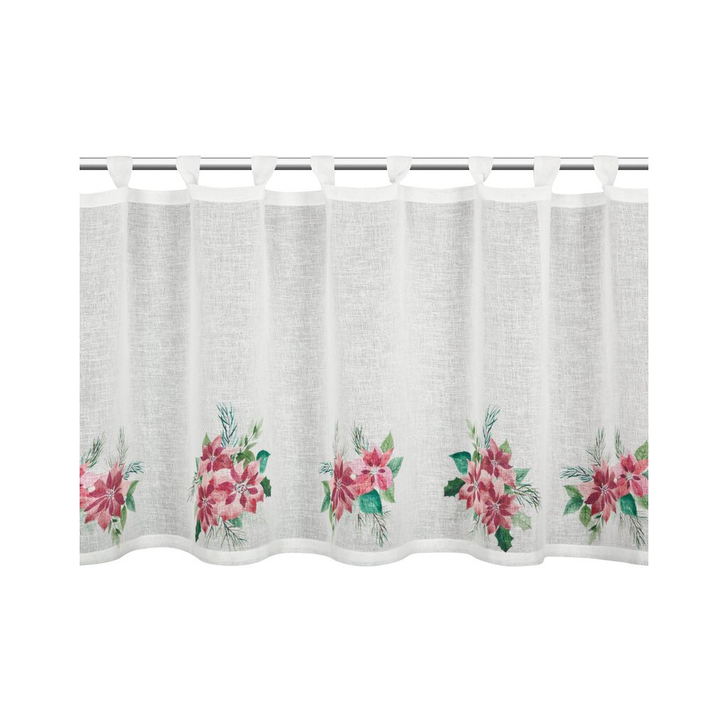 Biela vitrážová záclona s potlačou vianočnej ruže na uškách XMAS 150x60 cm