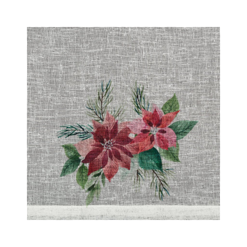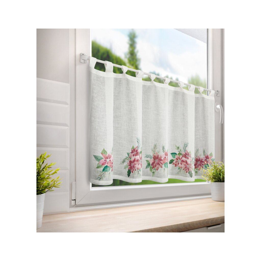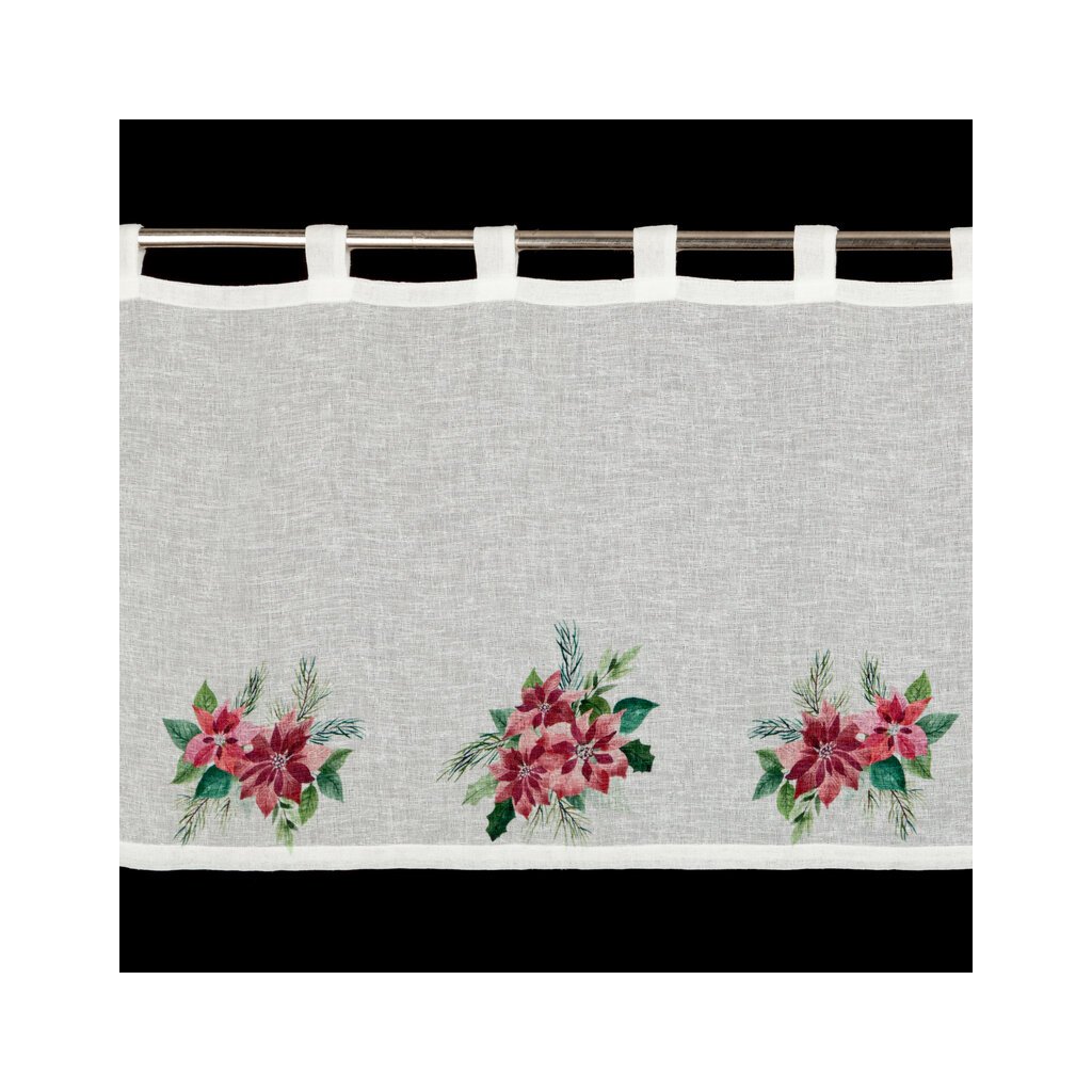 Biela vitrážová záclona s potlačou vianočnej ruže na uškách XMAS 150x60 cm