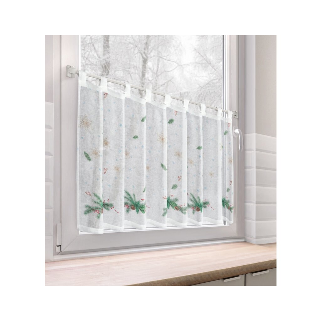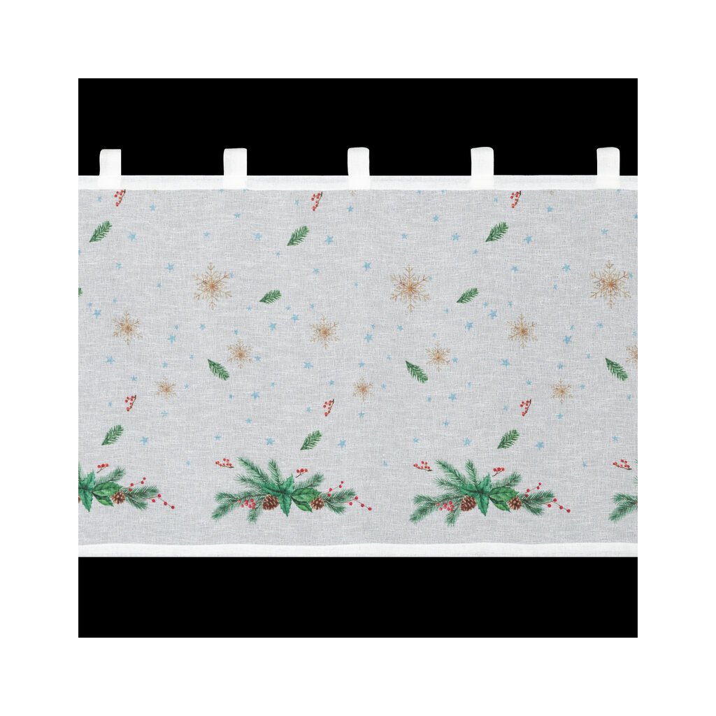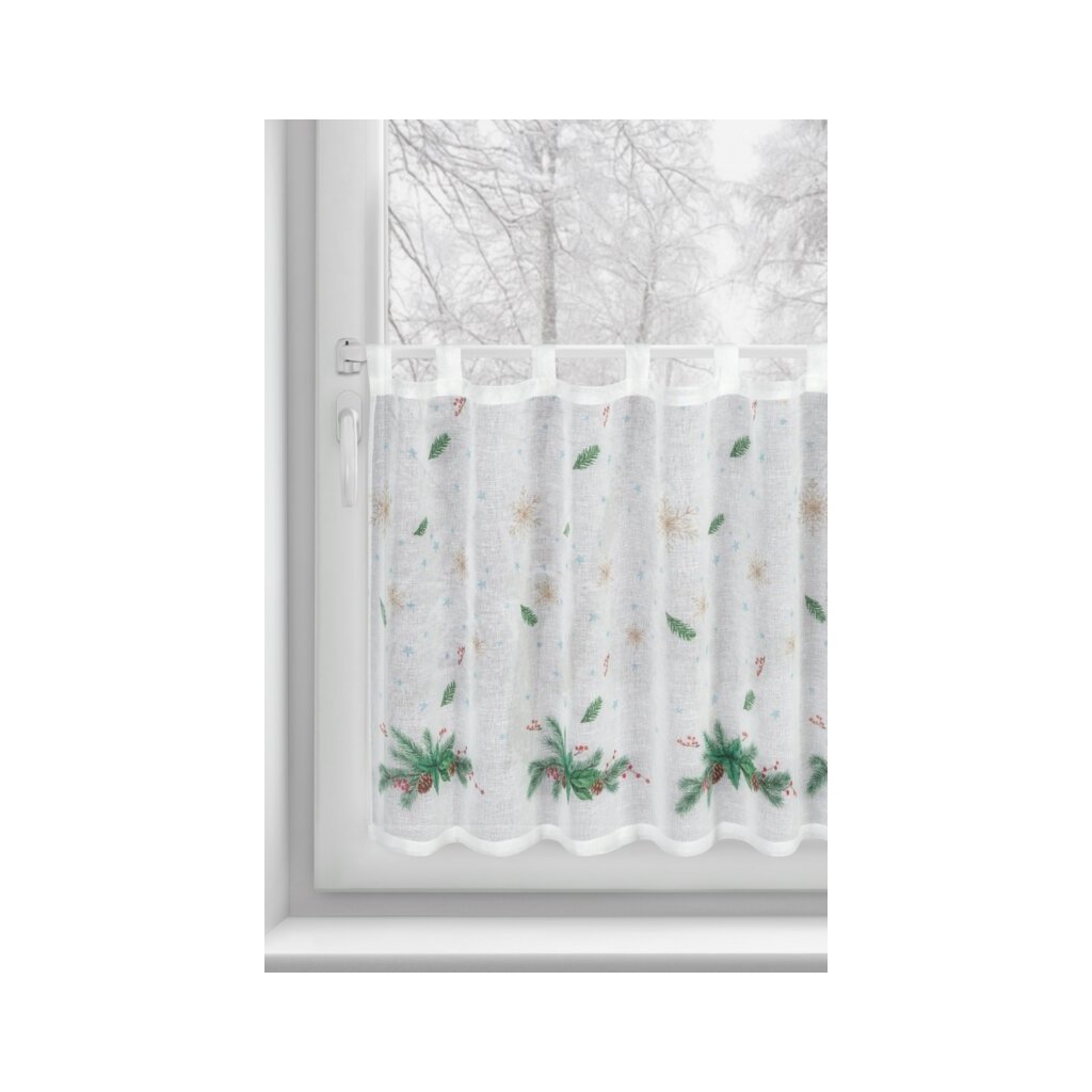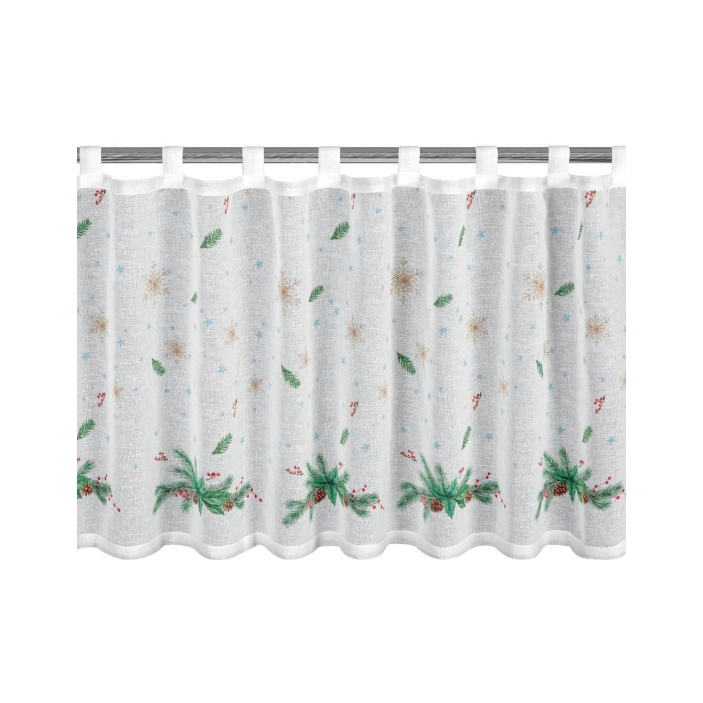 Biela vitrážová záclona s potlačou vianočných vetvičiek na uškách XMAS 150x60 cm