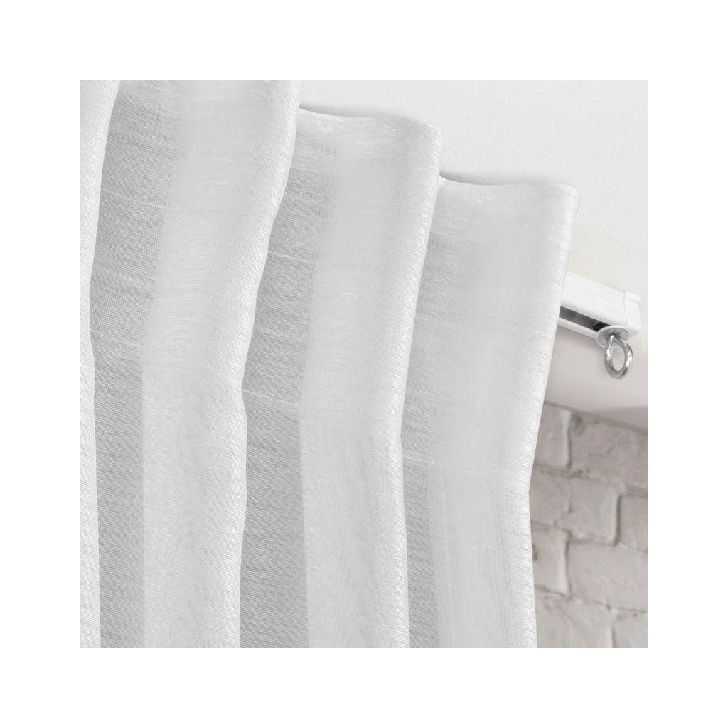 Očarujúca záclona BELISSA z husto tkaného etamínu so štruktúrou jemného dažďa vás očarí svojím univerzálnym tvarom a jasným bielym odtieňom. Hodí sa takmer do každého štýlu a interiéru. Záclonu odporúčame do interiérov v škandinávskom štýle, do romantických a neoromantických štylizácií aj do typicky klasických aranžmánov. Vďaka tesnej väzbe záclona jemne kryje okno, preto sa odporúča najmä do veľmi slnečných interiérov, kde chceme obmedziť prílev slnečného žiarenia. Záclona je v hornej časti vybavená praktickou flex páskou, ktorú jednoducho zavesíte pomocou háčikov, čo vám umožní rýchlu a jednoduchú výmenu. Flex páska látku usporiada do krásnych dvojitých rovnomerných vĺn, umožní upevnenia v rôznych výškach a taktiež nemá žiadne výstupky nad páskou, takže záclonu môžete jednoducho posúvať po stropnej koľajnici. Neváhajte, ozdobte svoje okno sviežosťou a eleganciou!