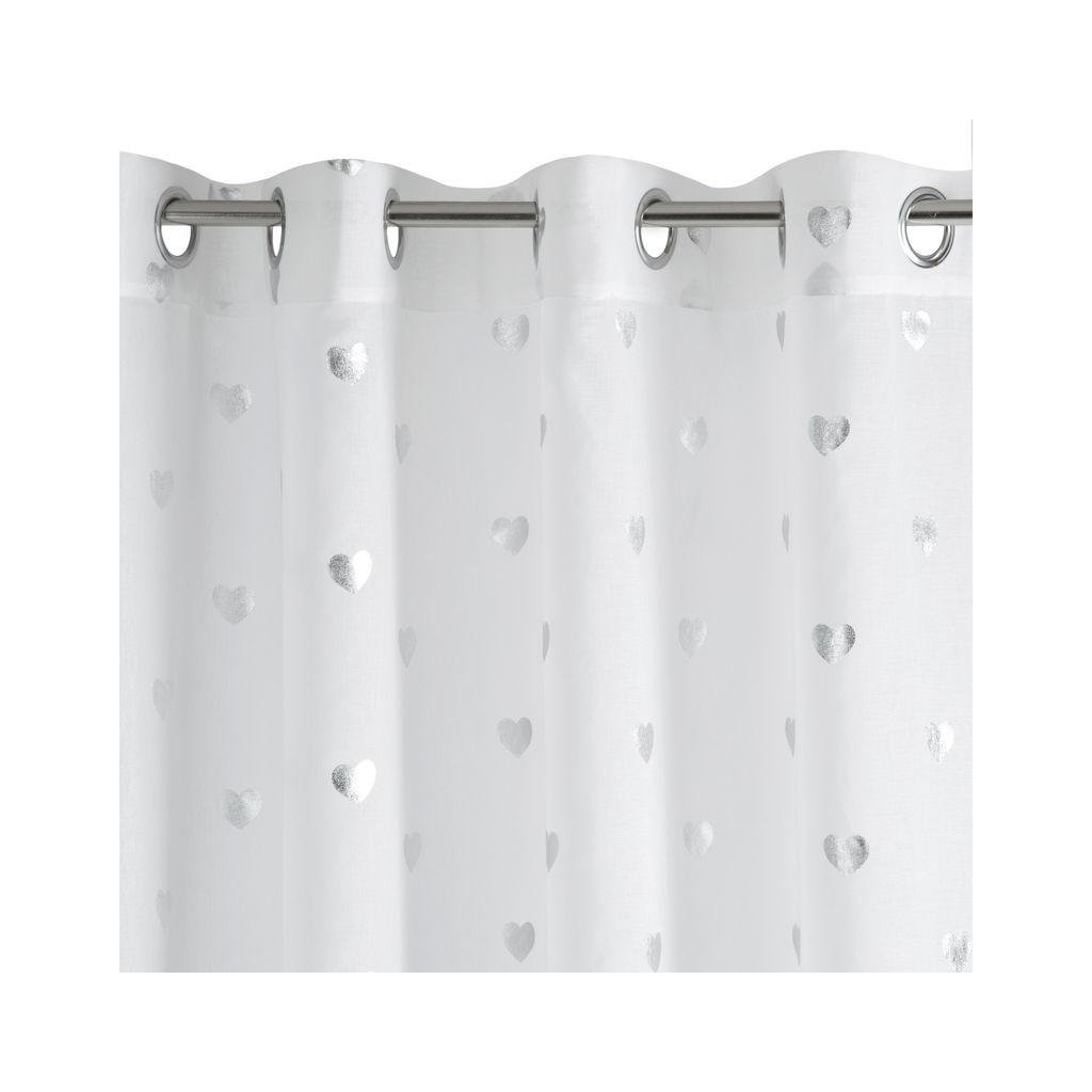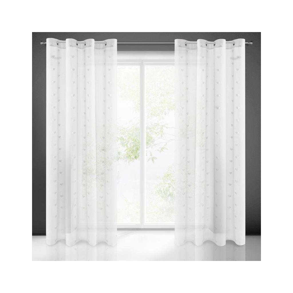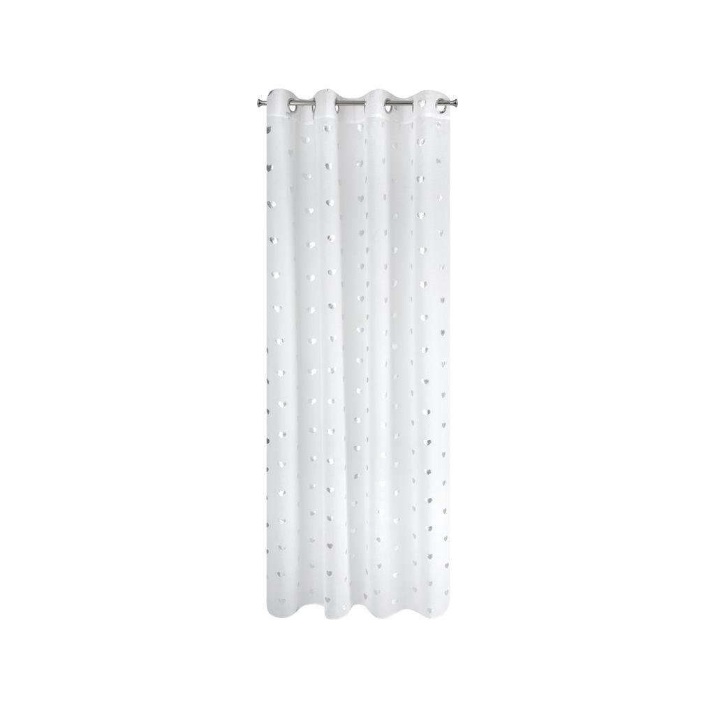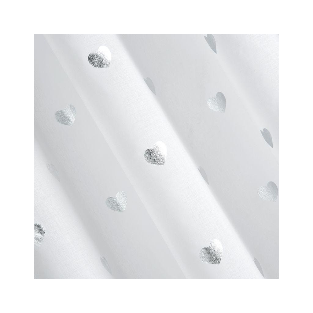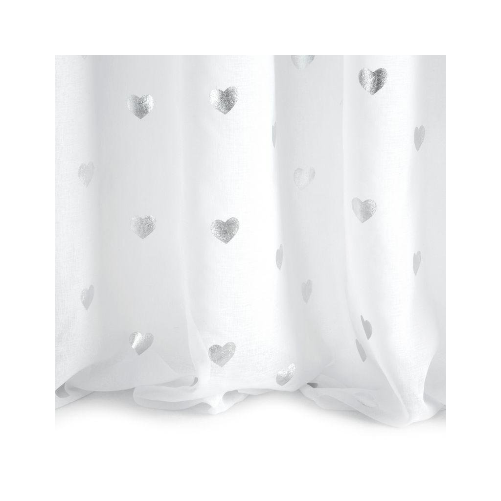 Očarujúca biela záclona BENAY so striebornou potlačou v tvare maličkých srdiečok ozdobí interiér v minimalistickom modernom štýle. Šírka: 140 cm, dĺžka: 250 cm. Gramáž: 70 g/m2. Materiál: 100% polyester. Praktické zavesenie na kovových krúžkoch.