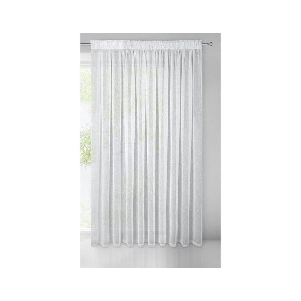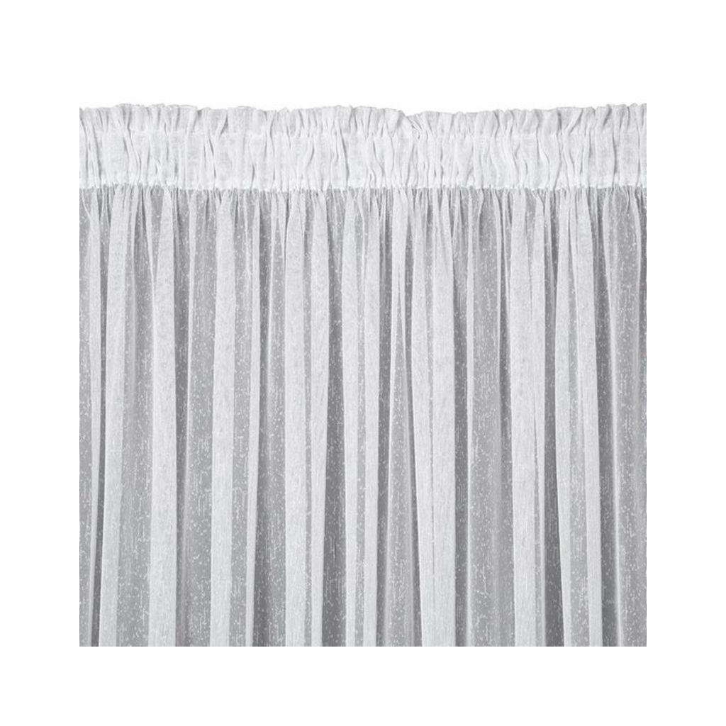 Jemná záclona bielej farby so štruktúrou dažďovej kvapky s pridaním priehľadnej trblietavej nite.. Šírka: 300 cm, dĺžka: 250 cm. Zloženie: 100% polyester. Ľahké žehlenie a pranie. Praktické zavesenie na riasiacej páske.