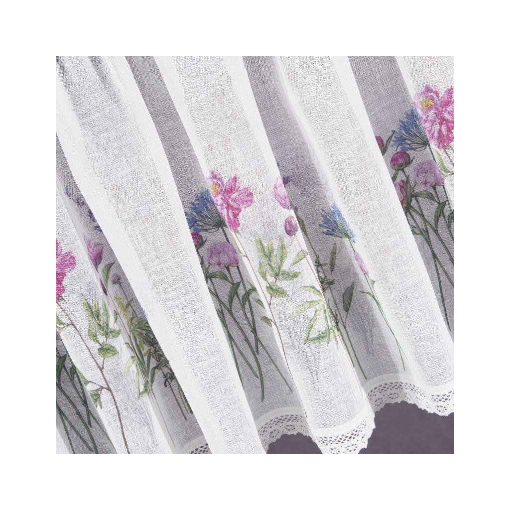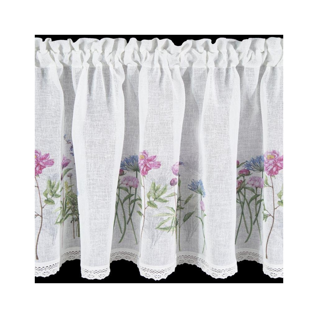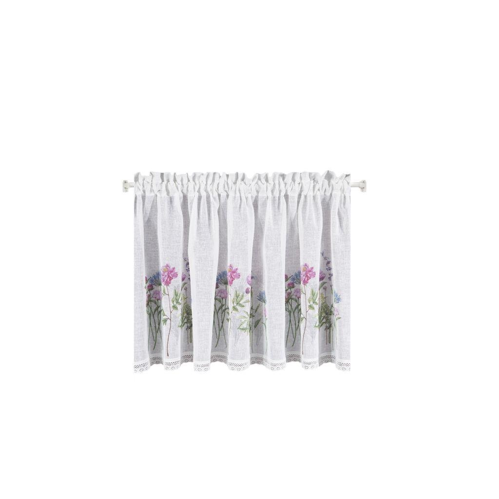 Vďaka záclone LAURA v rustikálnom štýle sa budete v interiéri cítiť príjemne. Takú atmosféru zaistia vzor s letnými kvetmi a bavlnená čipka. Malý záves z hustej látky zabezpečí vašej kuchyni prirodzené svetlo a jedinečnú atmosféru. Praktická riasiaca páska zaručí nádherný vzhľad záclony.