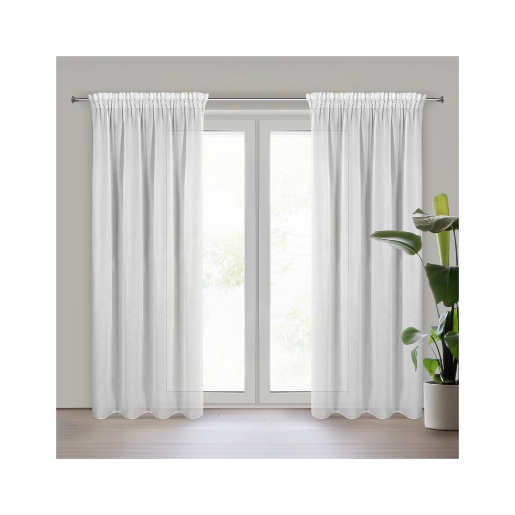 Biela záclona s efektom drobných listov na páske TULSA 140x270 cm