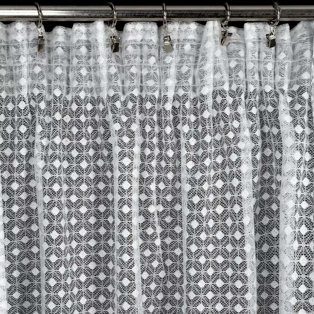 Biela záclona s jemným geometrickým vzorom na páske ALAYA 140x270 cm