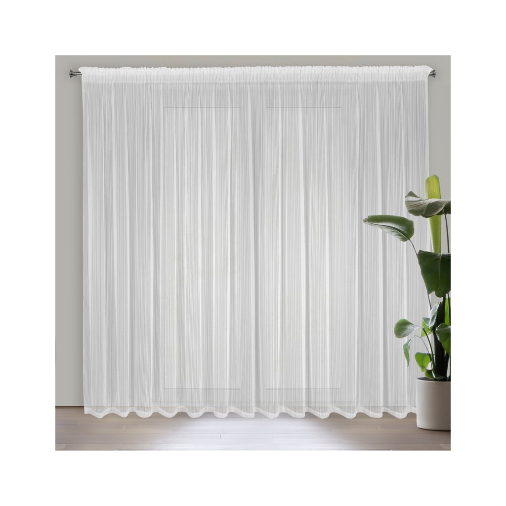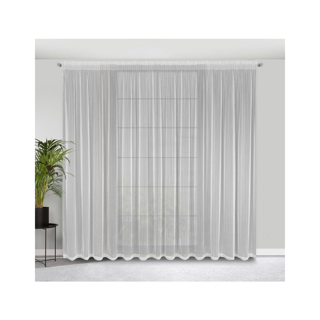 Biela záclona s jemnými prúžkami na páske NOELIA 300x270 cm