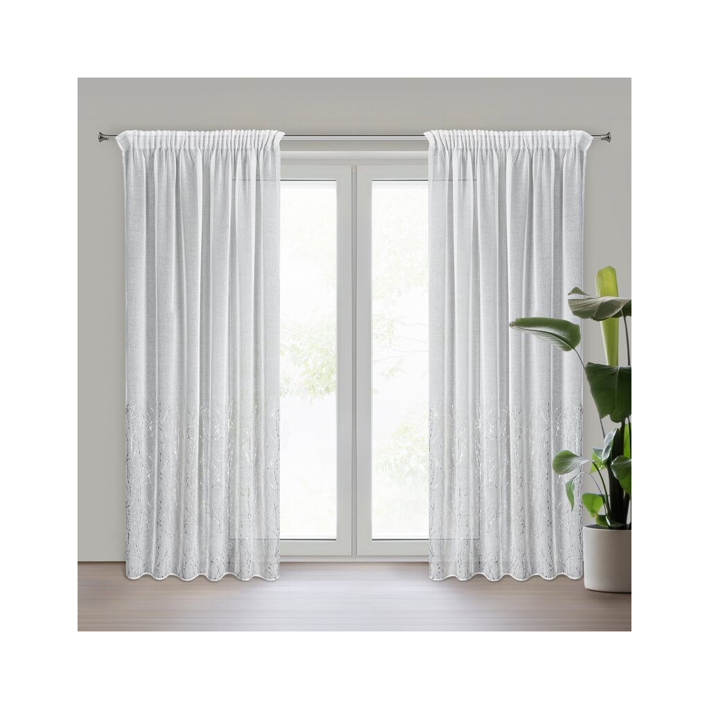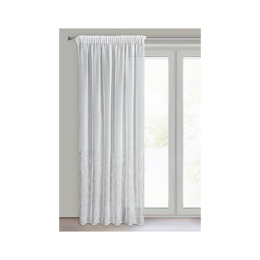 Biela záclona so strieborným mramorovým vzorom na páske MELIA 140x270 cm