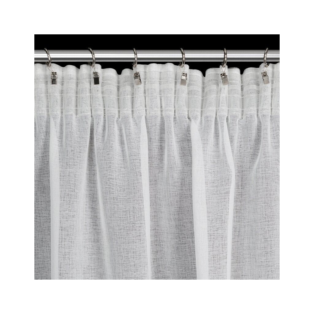 Hotová záclona MELIA je ušitá z ľahkej a vzdušnej etamíny, ktorá jemne prepúšťa svetlo a vytvára v interiéri útulnú a elegantnú atmosféru. Spodná časť je ozdobená moderným plastickým vzorom s efektom mramoru, ktorý dodáva tkanine výnimočný charakter.