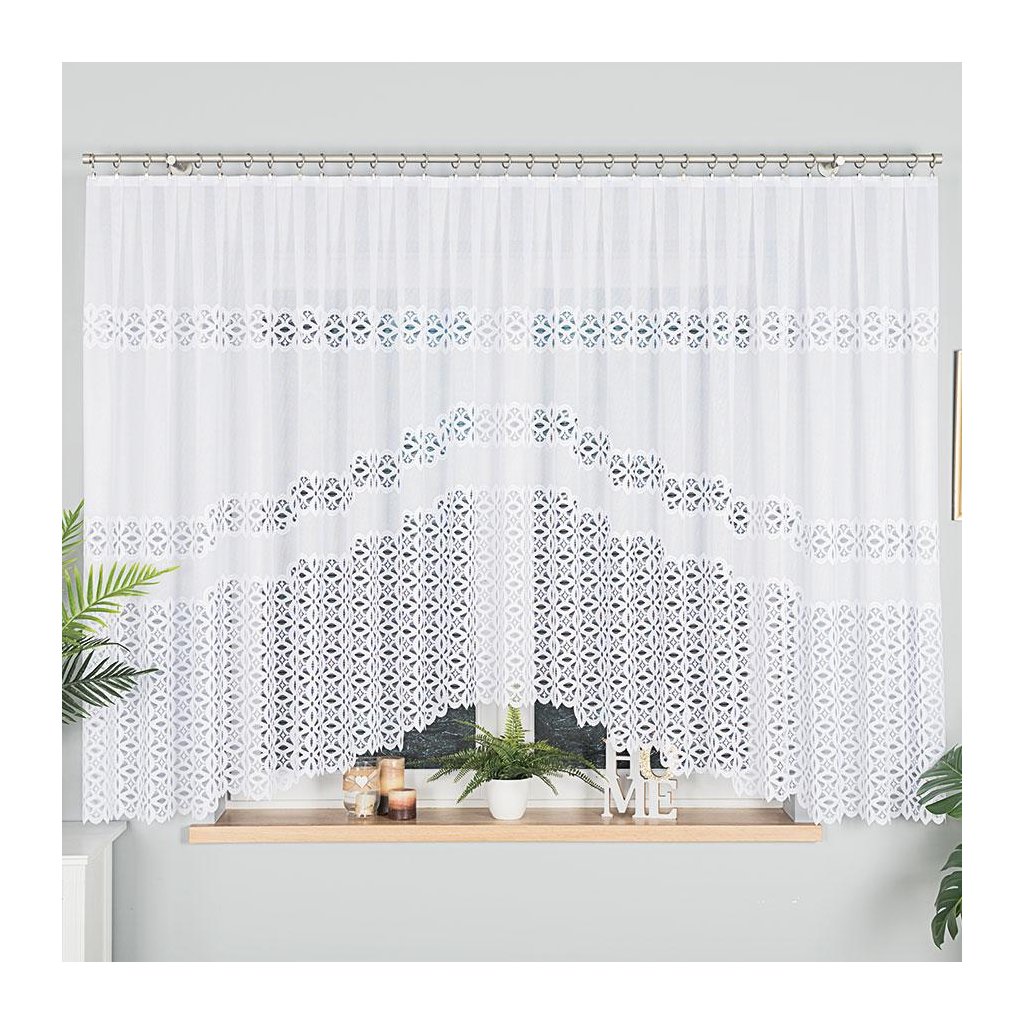 Transparentnosť záclony je premyslene navrhnutá tak, aby prepúšťala dostatok denného svetla, no zároveň jemne chránila vaše súkromie. Biely žakarový vzor je bohatý, no nie príliš výrazný – pôsobí nežne a sviežo. Krásne sa hodí do moderného aj klasického interiéru a najmä vďaka svojmu dizajnu zjemní miestnosť a dodá jej osobitý šmrnc.