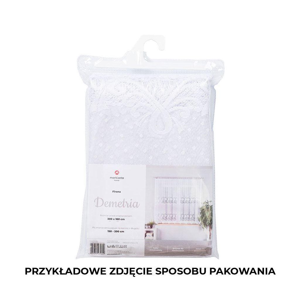 DEMETRIA je záclona, ktorá v interiéri pôsobí elegantne a ľahko. Jemná priesvitná sieťka vpúšťa do miestnosti množstvo denného svetla, zatiaľ čo žakárové pásy s kvetinovým motívom dodávajú oknu dekoratívny charakter bez zbytočnej okázalosti.