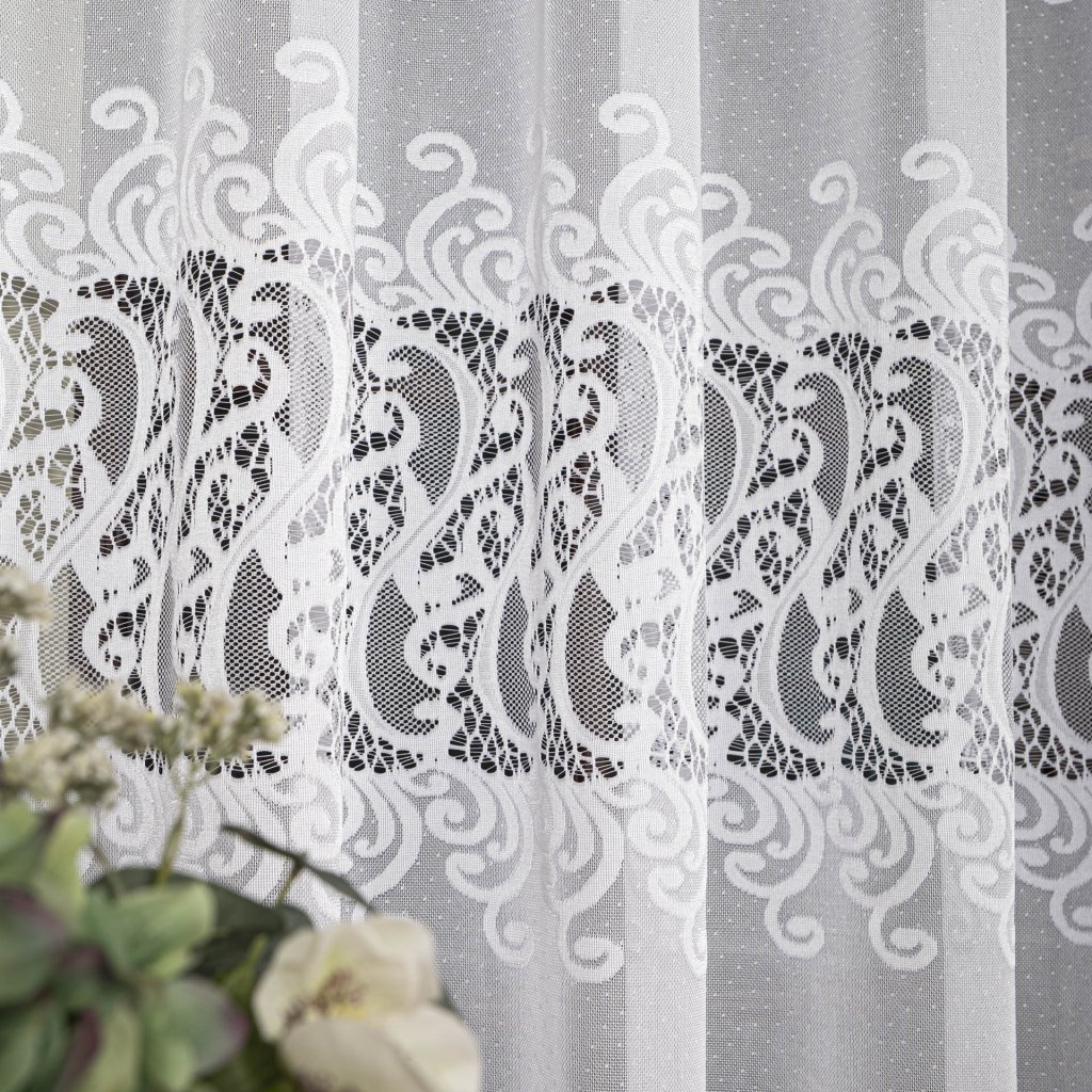 Biela žakarová záclona MEGAN so zaujímavým vzorom
