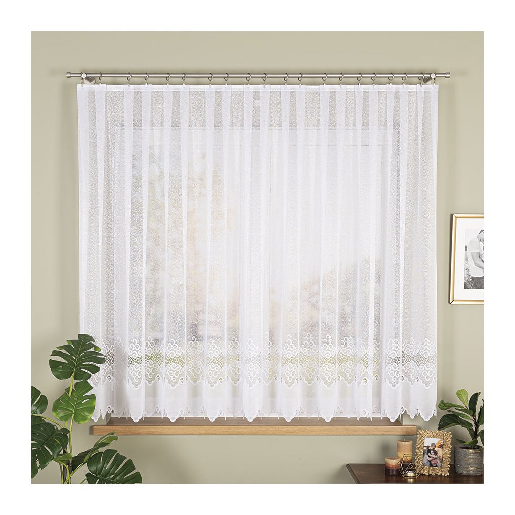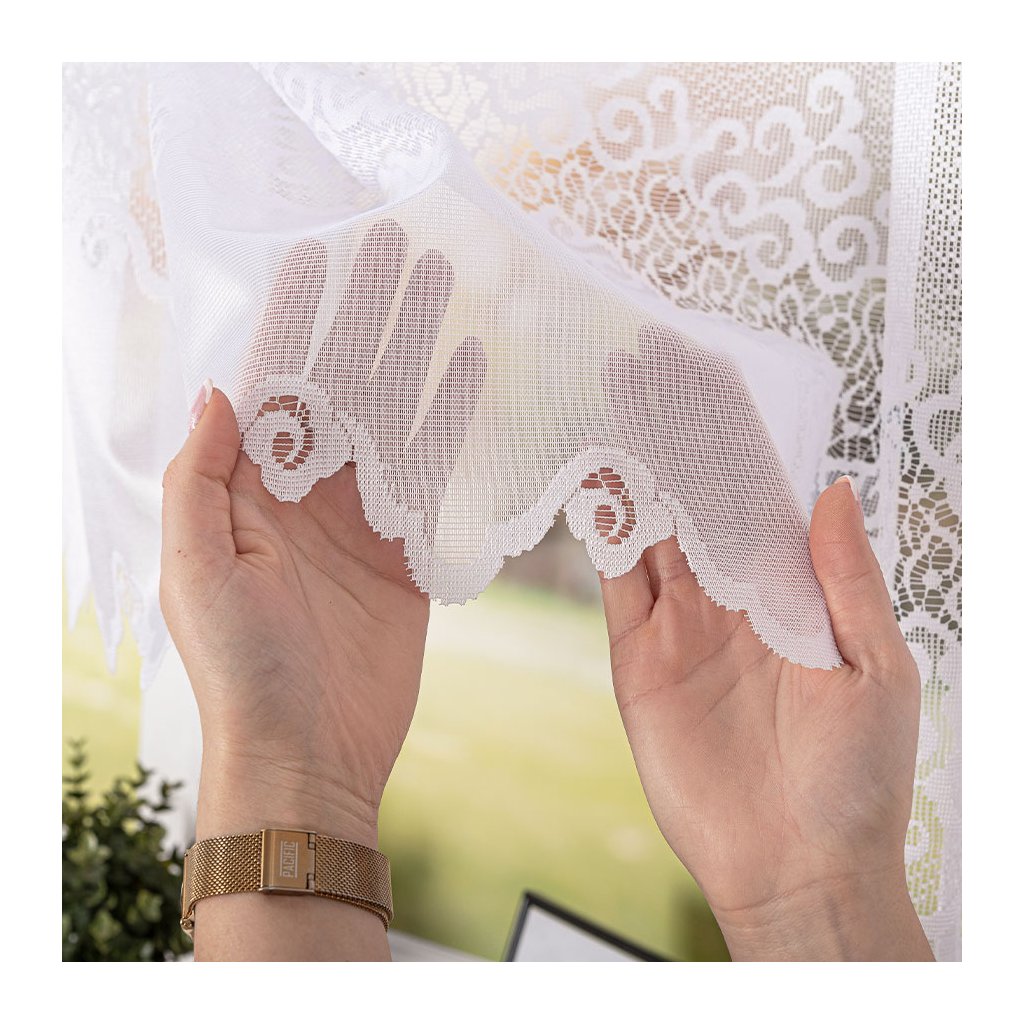 Vitajte vo svete, kde elegancia, nadčasovosť a funkčnosť idú ruka v ruke. Naša biela žakárová záclona je viac než len obyčajný doplnok do vášho interiéru. Je to kľúč k vytvoreniu priestoru plného svetla, pokoja a neopakovateľnej atmosféry. Vyrobená z vysokokvalitného 100% polyesteru, táto záclona spája v sebe nadčasovú krásu žakárového dizajnu s modernými technológiami spracovania látky.