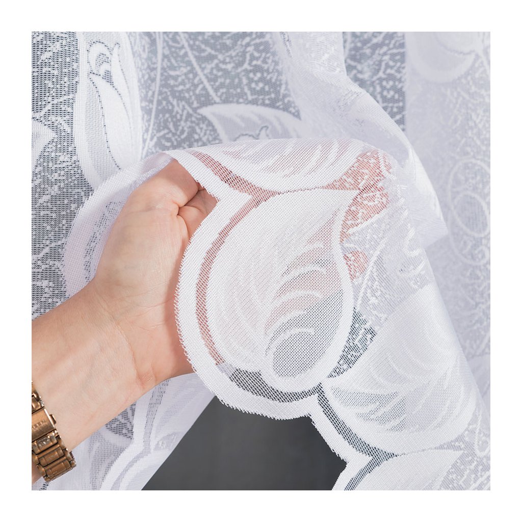 Vitajte vo svete, kde elegancia, nadčasovosť a funkčnosť idú ruka v ruke. Naša biela žakárová záclona je viac než len obyčajný doplnok do vášho interiéru. Je to kľúč k vytvoreniu priestoru plného svetla, pokoja a neopakovateľnej atmosféry. Vyrobená z vysokokvalitného 100% polyesteru, táto záclona spája v sebe nadčasovú krásu žakárového dizajnu s modernými technológiami spracovania látky.