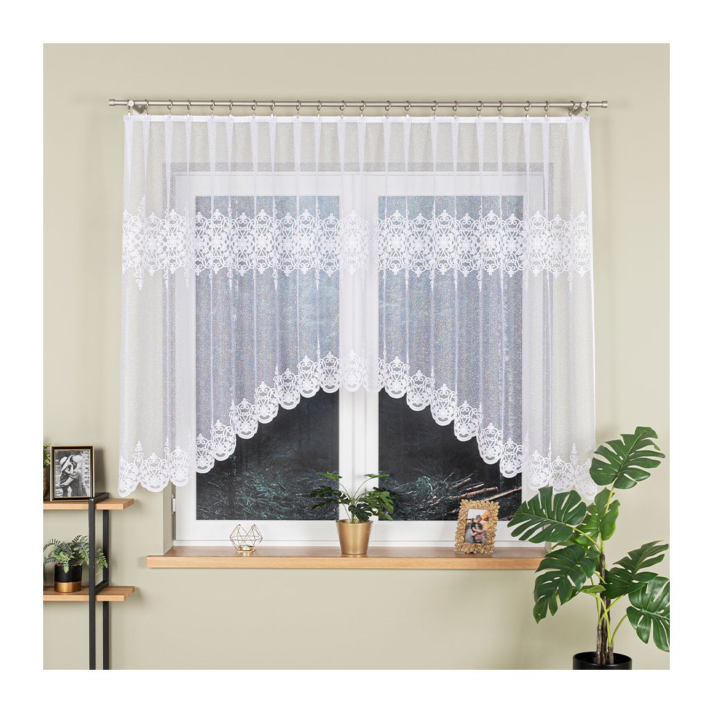 Vitajte vo svete, kde elegancia, nadčasovosť a funkčnosť idú ruka v ruke. Naša biela žakárová záclona je viac než len obyčajný doplnok do vášho interiéru. Je to kľúč k vytvoreniu priestoru plného svetla, pokoja a neopakovateľnej atmosféry. Vyrobená z vysokokvalitného 100% polyesteru, táto záclona spája v sebe nadčasovú krásu žakárového dizajnu s modernými technológiami spracovania látky.