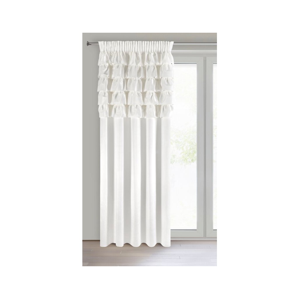Biely zamatový záves s volánmi na páske AURA 140x270 cm
