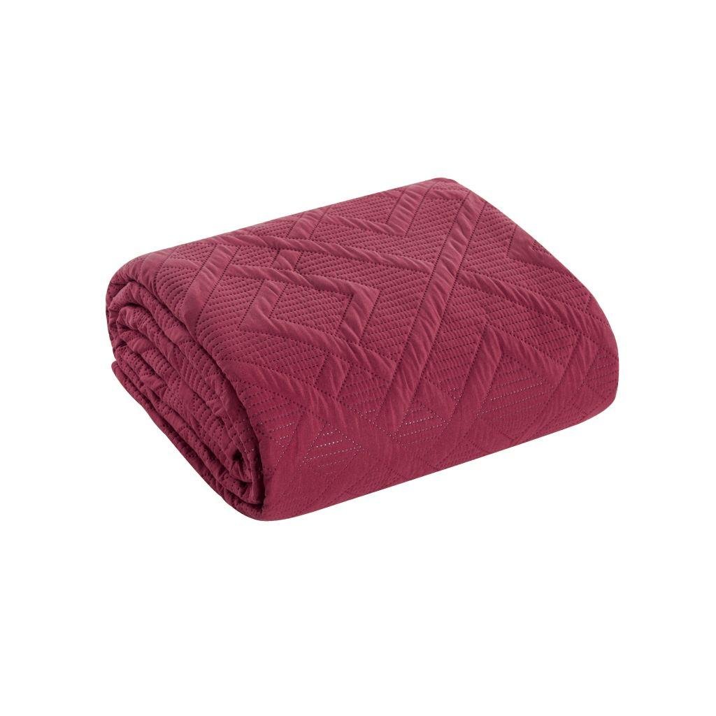 Jednofarebný bordový prehoz na posteľ s módnym geometrickým vzorom, vyrobený technikou hot press. 230x260 cm