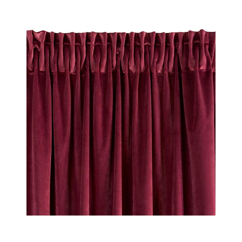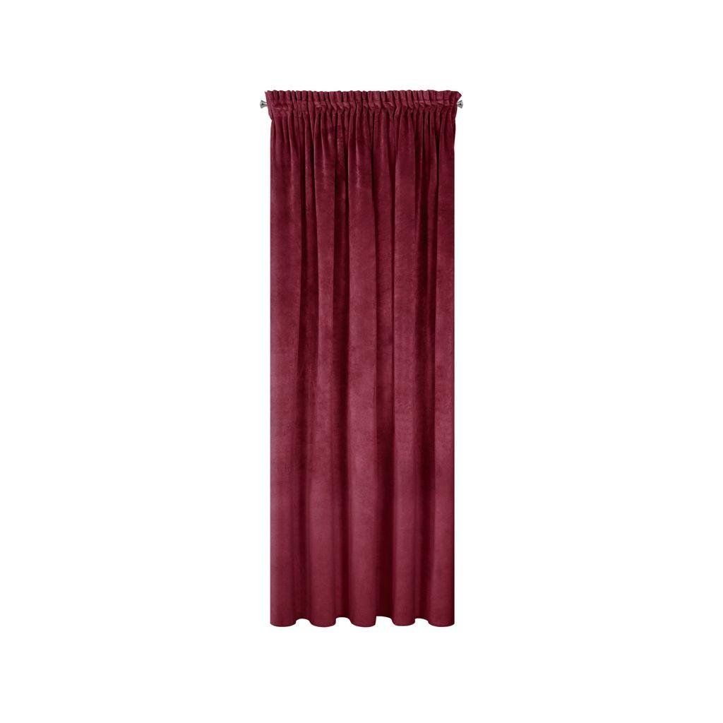 Zamatový jednofarebný bordový záves RIA. Masívna látka poskytuje vysoký stupeň vnútorného zatemnenia. Šírka: 140 cm, dĺžka: 270 cm. Zloženie: 100% polyester. Gramáž 290 g/m2. Praktické zavesenie na riasiacej páske.
