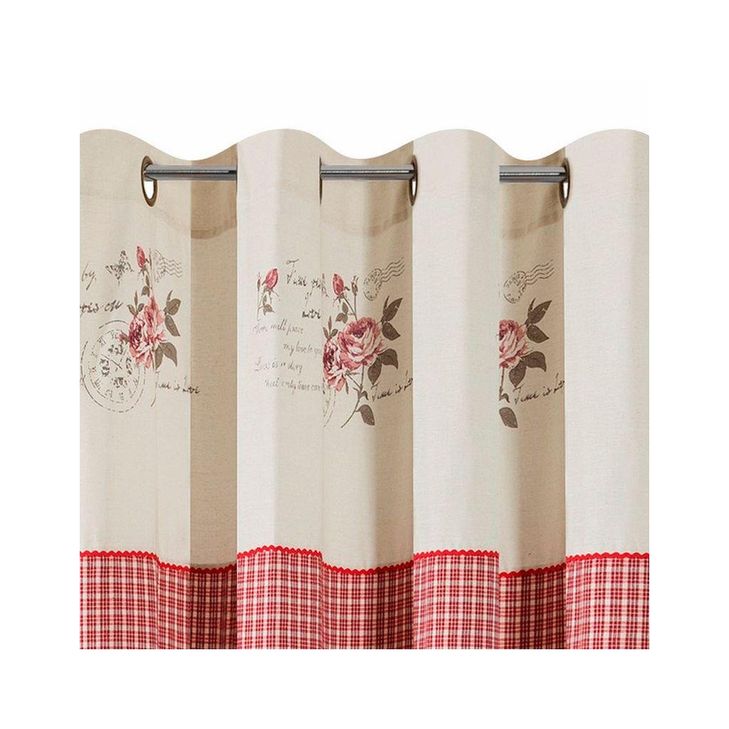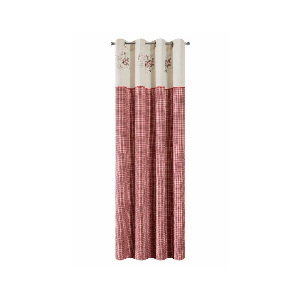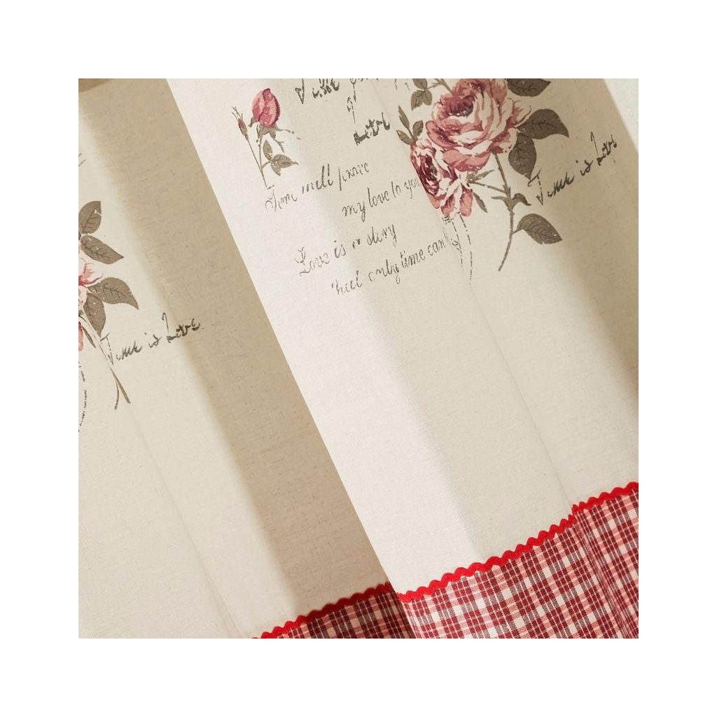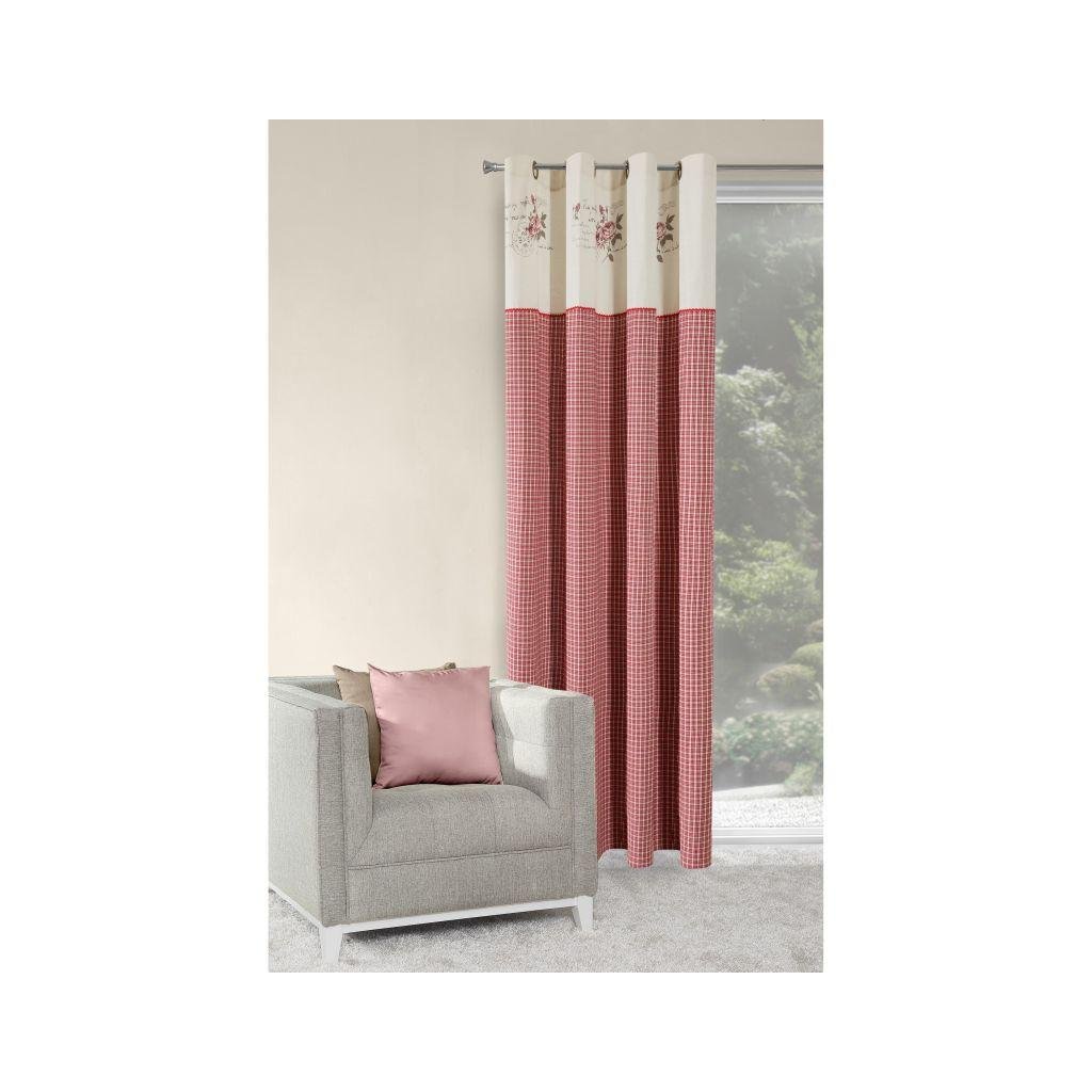 Záves ADAO červenokrémovej farby. V hornej časti závesu je krémový lem s kvietkami. Rozmer 140 x 250 cm.