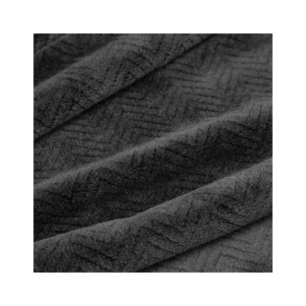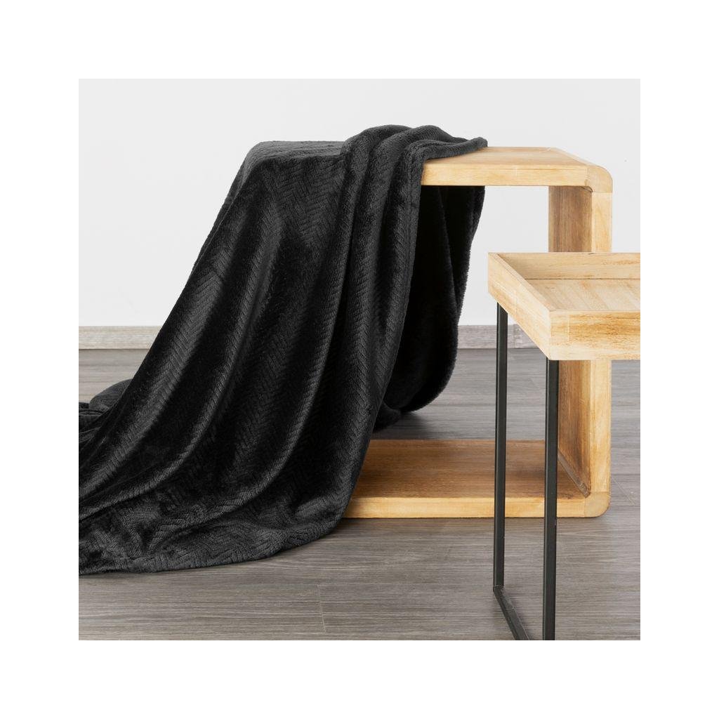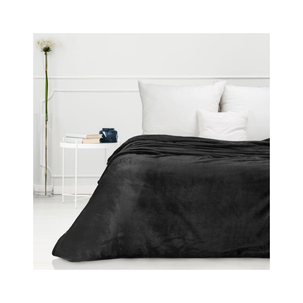 Elegantná čierna deka CINDY5 s reliéfnym vzorom rybej kosti krásne ozdobí vašu obývačku alebo spálňu. Extrémne jemná a na dotyk príjemná látka, z ktorej je deka ušitá, vám umožní maznať sa s ňou každý večer.