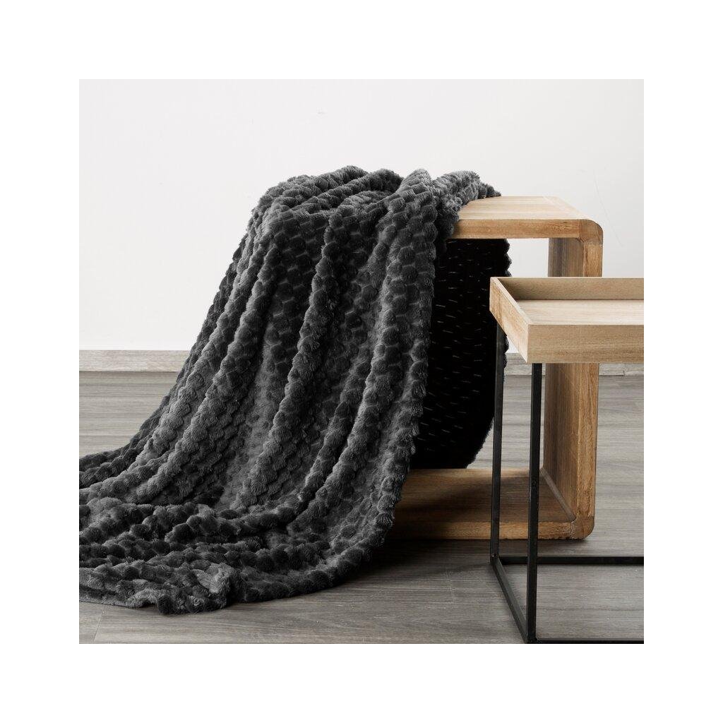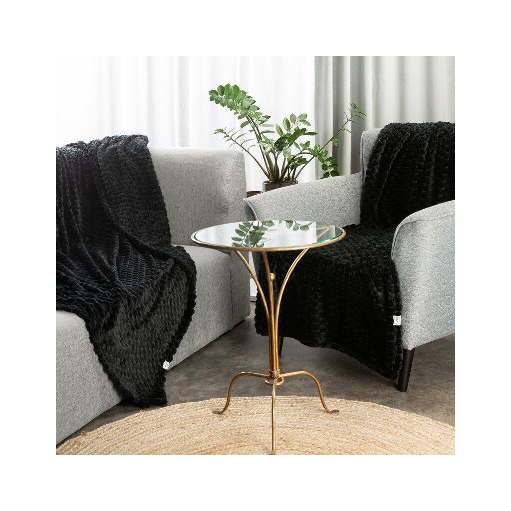Čierna huňatá deka CINDY6 s 3D vzorom 170x210 cm