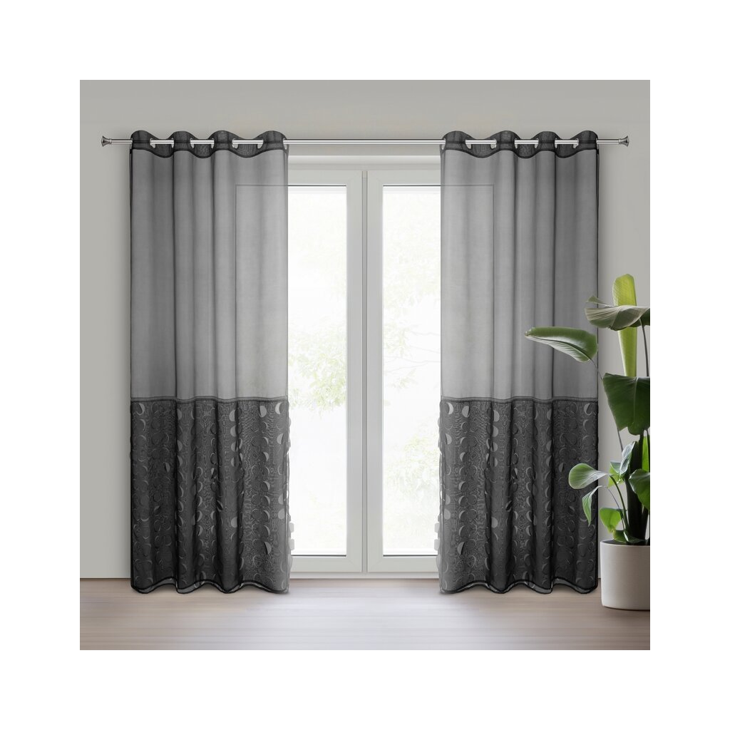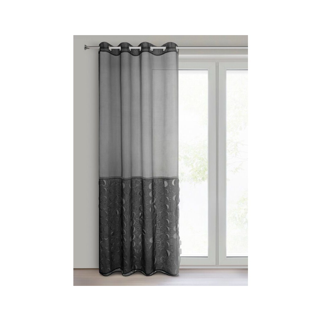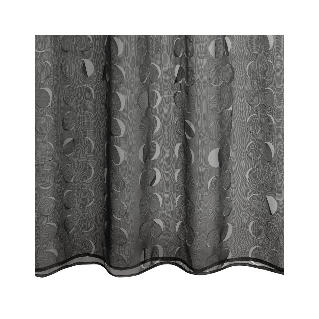 Čierna záclona z voálu so vzorom kruhov na krúžkoch DEBORA 140x250 cm