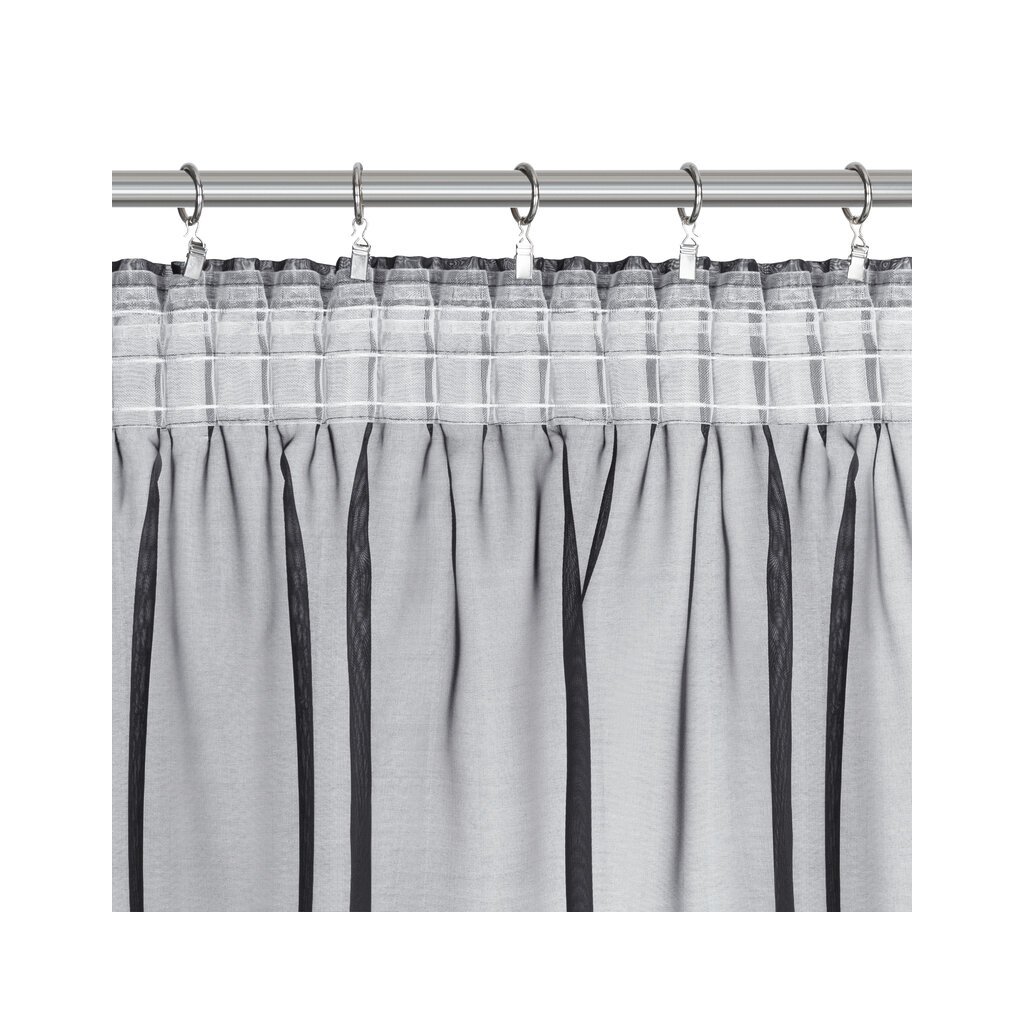 Čierna záclona z voálu so vzorom kruhov na páske DEBORA 140x270 cm