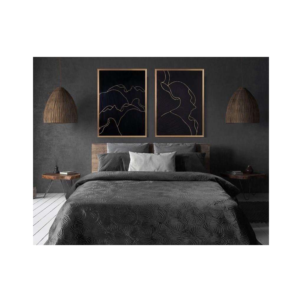 Čierny prehoz na posteľ LILI4 s potlačou 220x240 cm